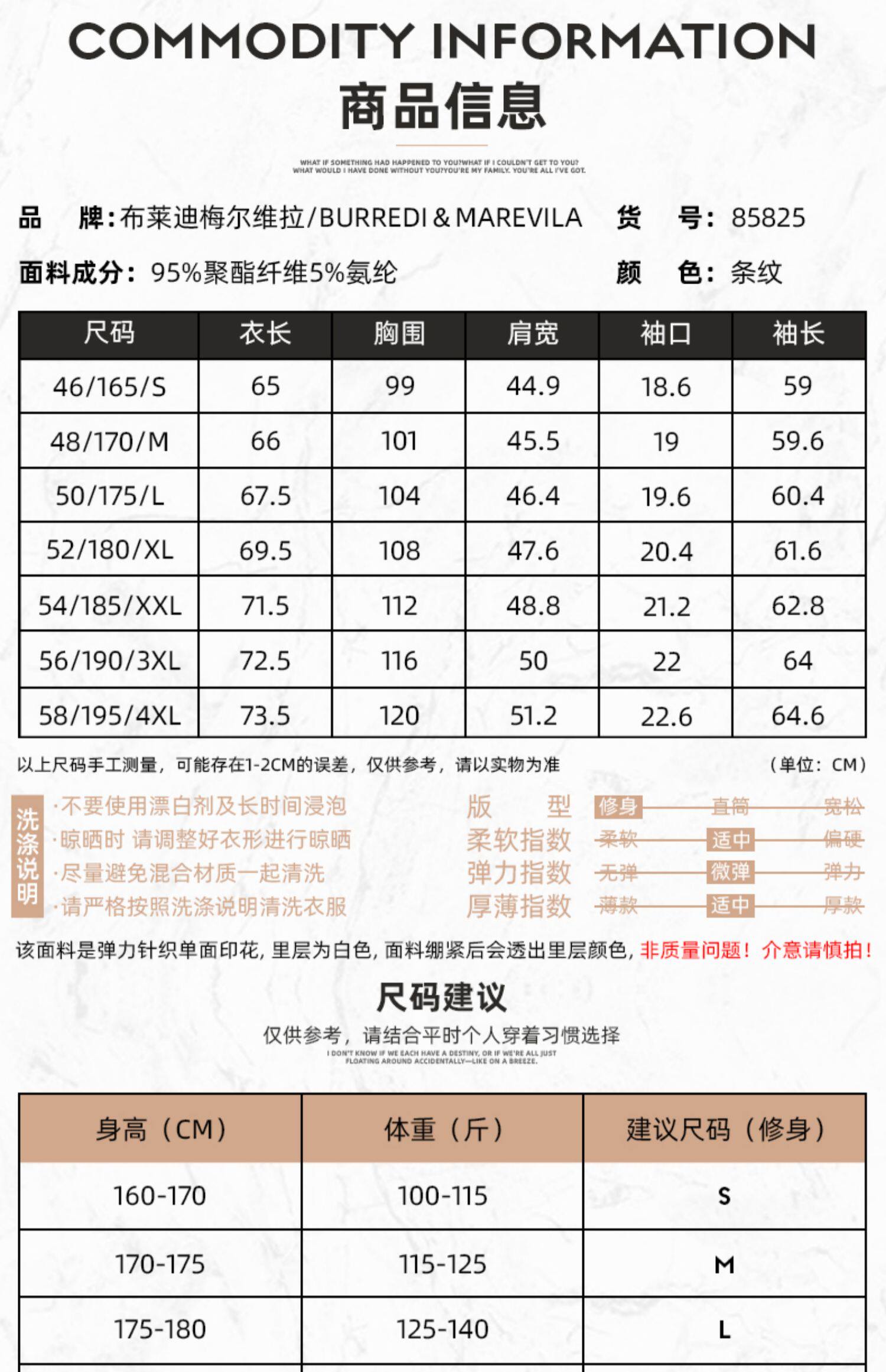 | Размер: | 46/S/165, 48/M/170, 50/L/175, 52/XL/180, 54/XXL/185, 56/XXXL/190, Пожалуйста, проконсультируйтесь с обслуживанием клиентов для точного кода |