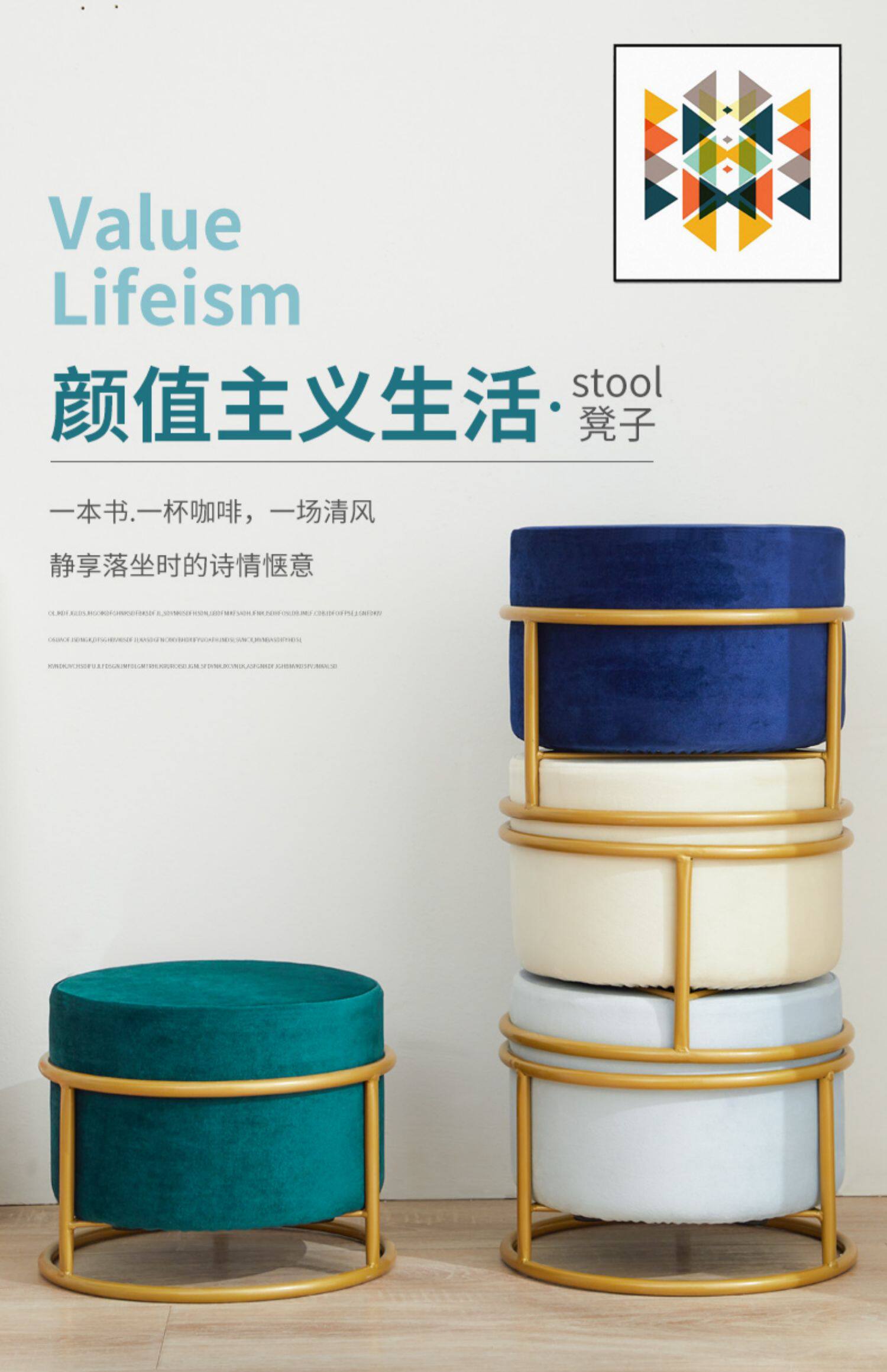 Дварф -стул гостиная кофейня Северная домашняя ткань табурет маленький круглый табурет Дверь Дверь Светлый роскош