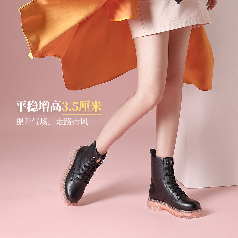 Martens, утепленные короткие сапоги, ботинки на платформе в английском стиле, в британском стиле, из натуральной кожи