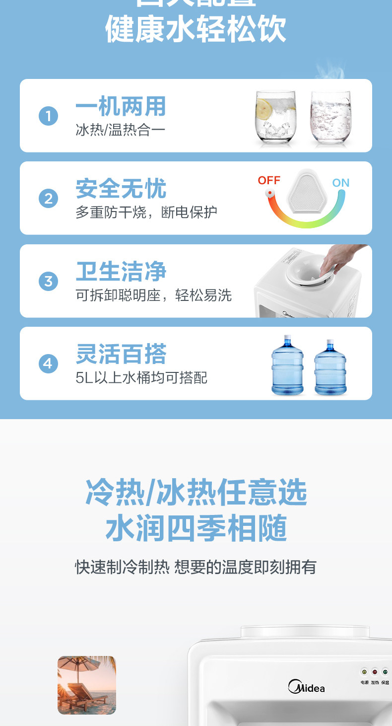 Midea Water Dispenser Домохозяйство Вертикальная ковша вода, горячее и холодное общежитие общежития Полностью автоматическая офисная подлинная жара 718