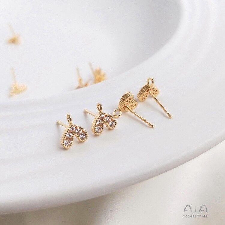 Серьги с цирконом в виде сердечка в форме сердца, аксессуар ручной работы, аксессуары, 14 карат, золотой цвет, DIY