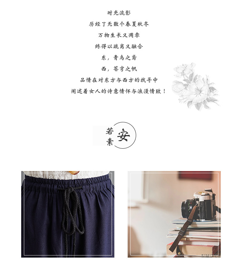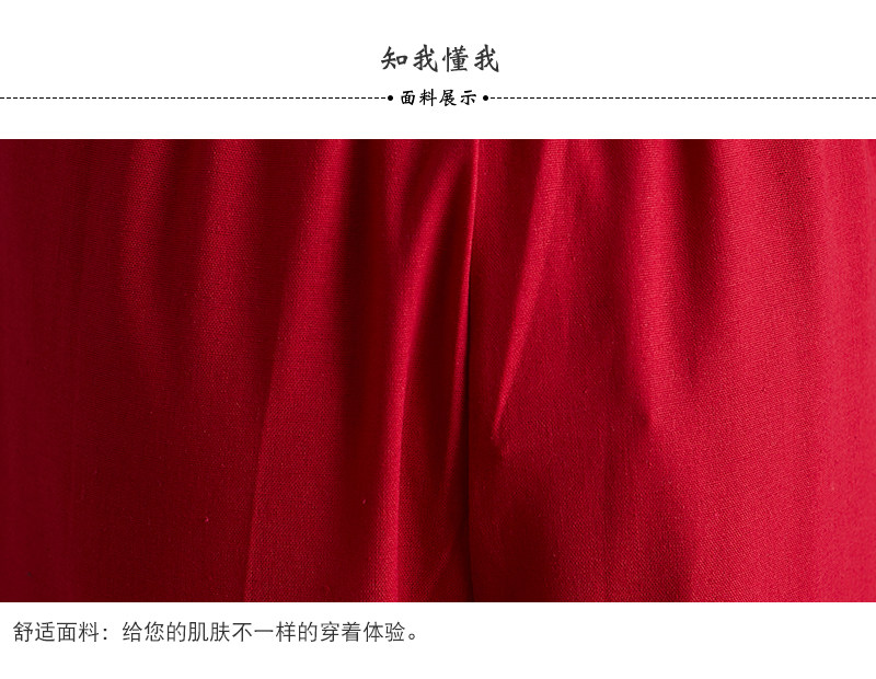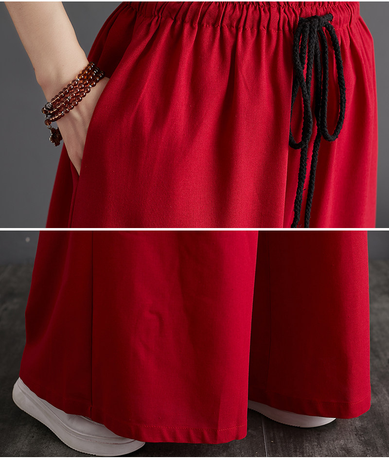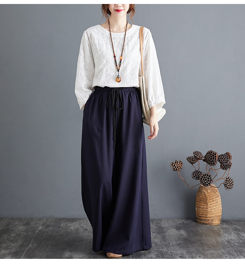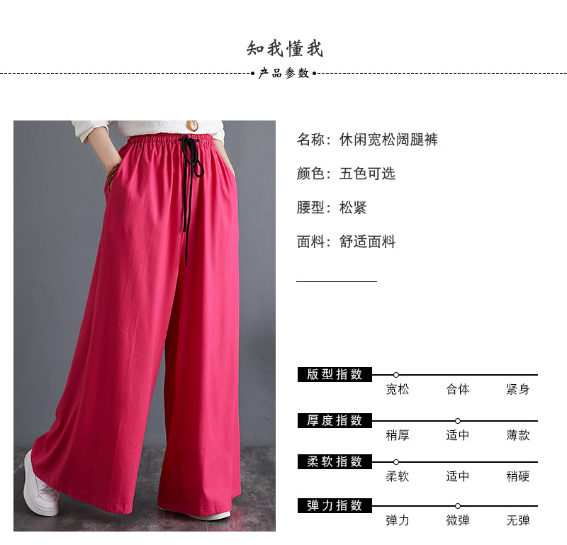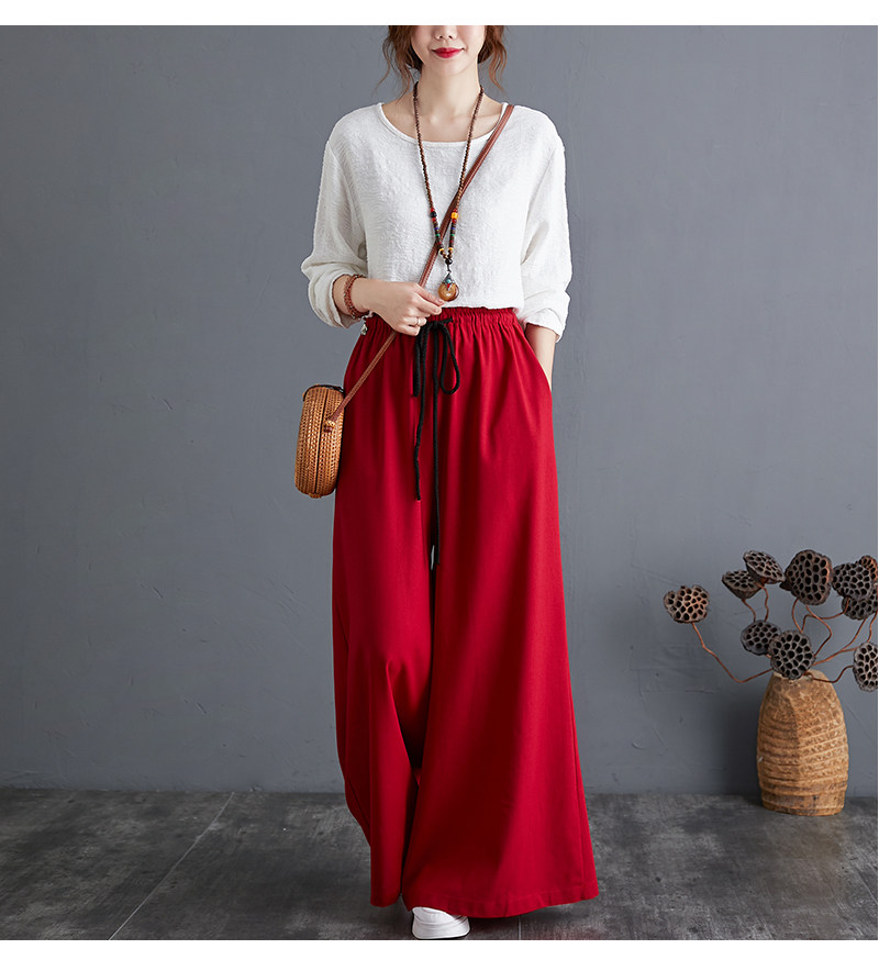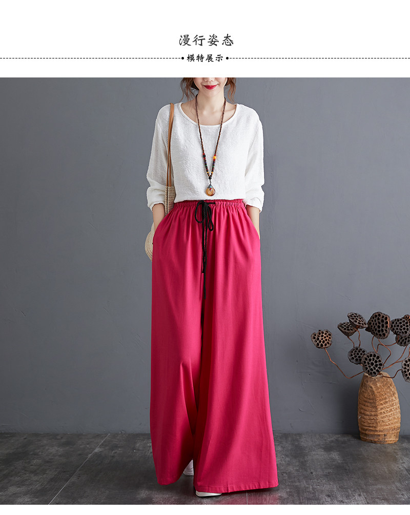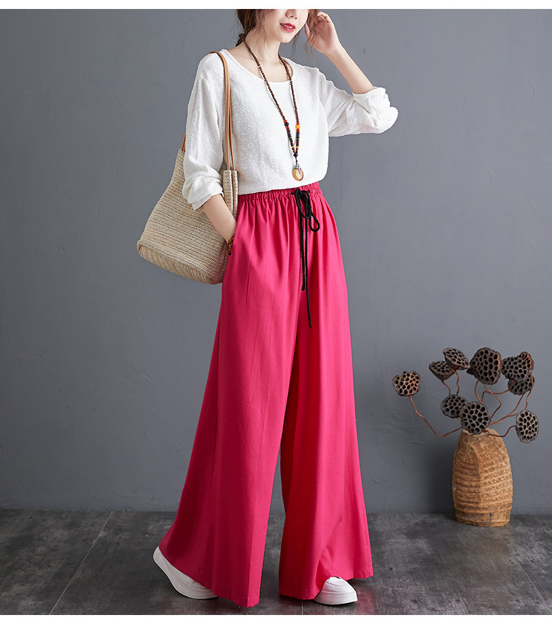 Штаны, из хлопка и льна, высокая талия, свободный прямой крой, китайский стиль