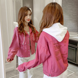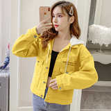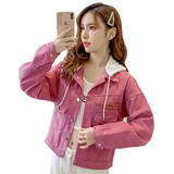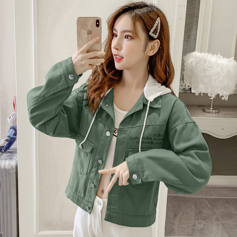 Джинсовая весенняя короткая куртка с капюшоном, коллекция 2022, в корейском стиле, с вышивкой