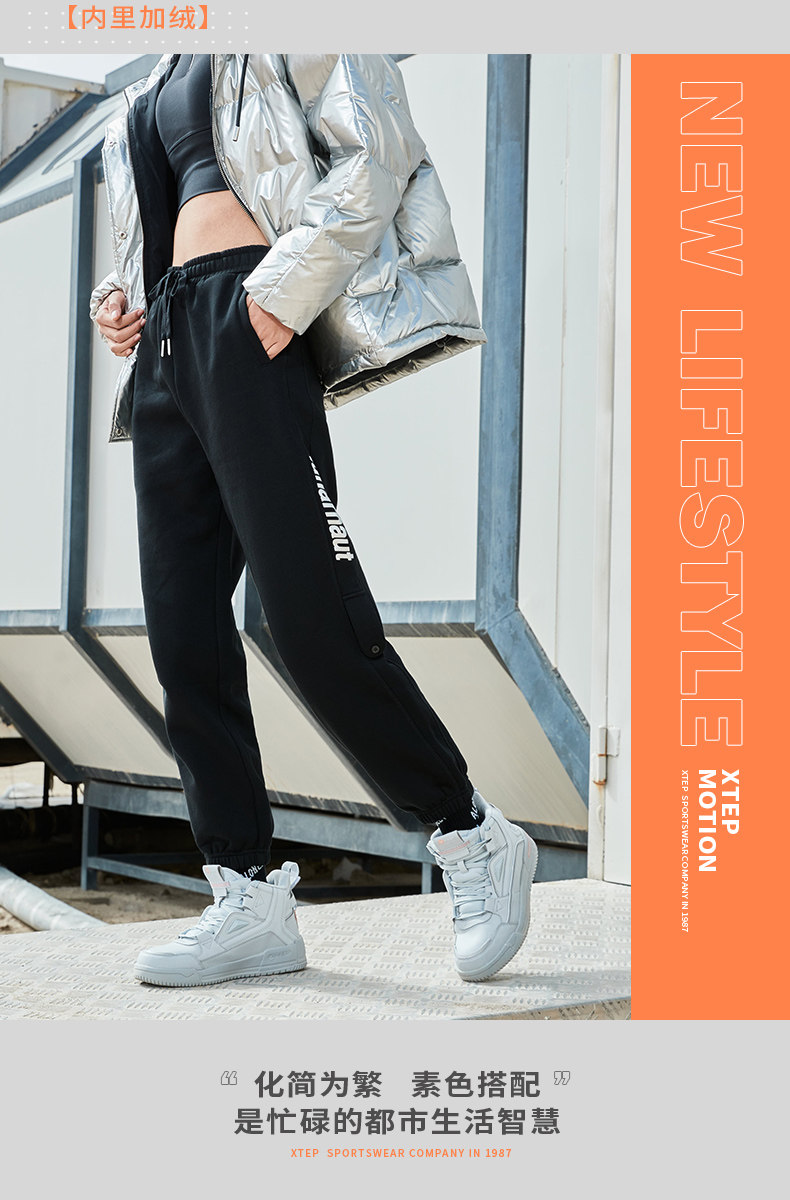 Xtep, демисезонные утепленные удерживающие тепло спортивные трикотажные штаны для отдыха, свободный крой