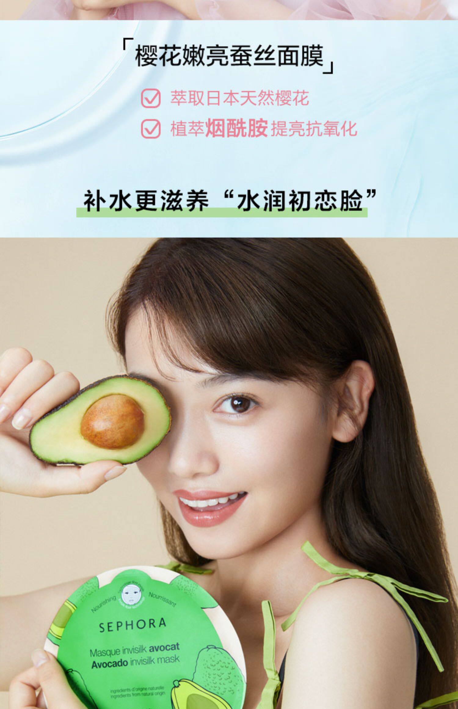 [Предварительная распродажа на день маски для лица] Sephora/Sephora шелковая маска третьего поколения с вишневым цветом и авокадо, увлажняющая и увлажняющая