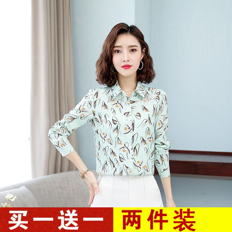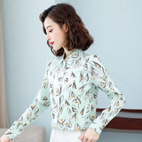 Шифоновая рубашка, осенний ретро лонгслив, шифоновая с принтом, 2020, в корейском стиле, цветочный принт