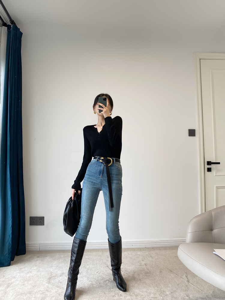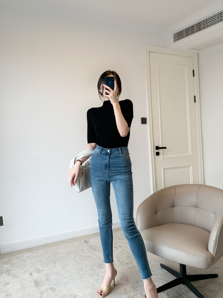 Эластичные джинсы, карандаш, штаны, облегающий крой, высокая талия