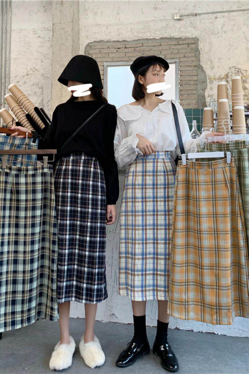 Осенняя приталенная юбка, большой размер, популярно в интернете, в корейском стиле, с акцентом на бедрах, высокая талия