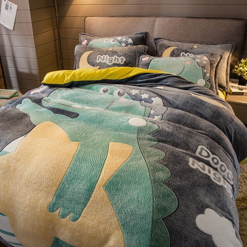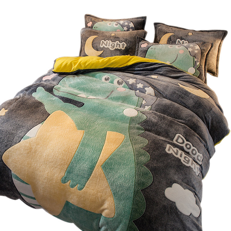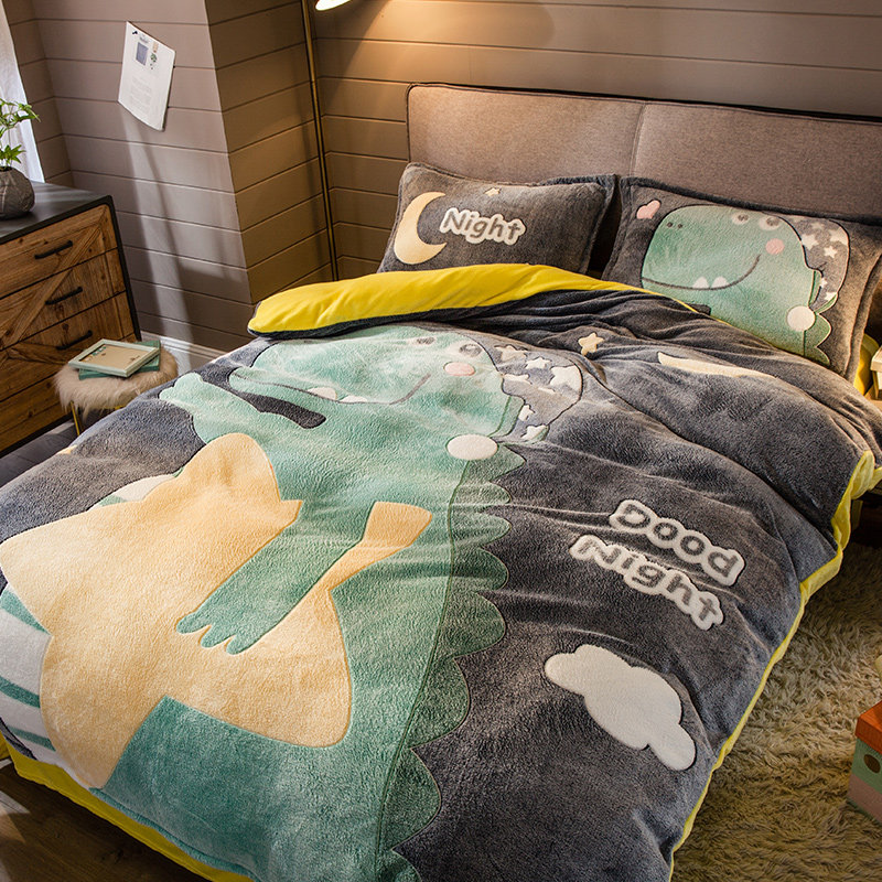 Коралловый зимний двусторонний удерживающий тепло комплект, фланелевый пододеяльник, простыня, увеличенная толщина, 4 предмета