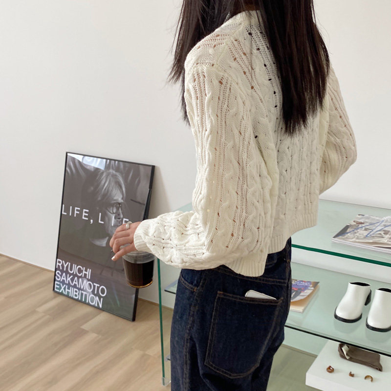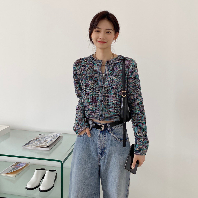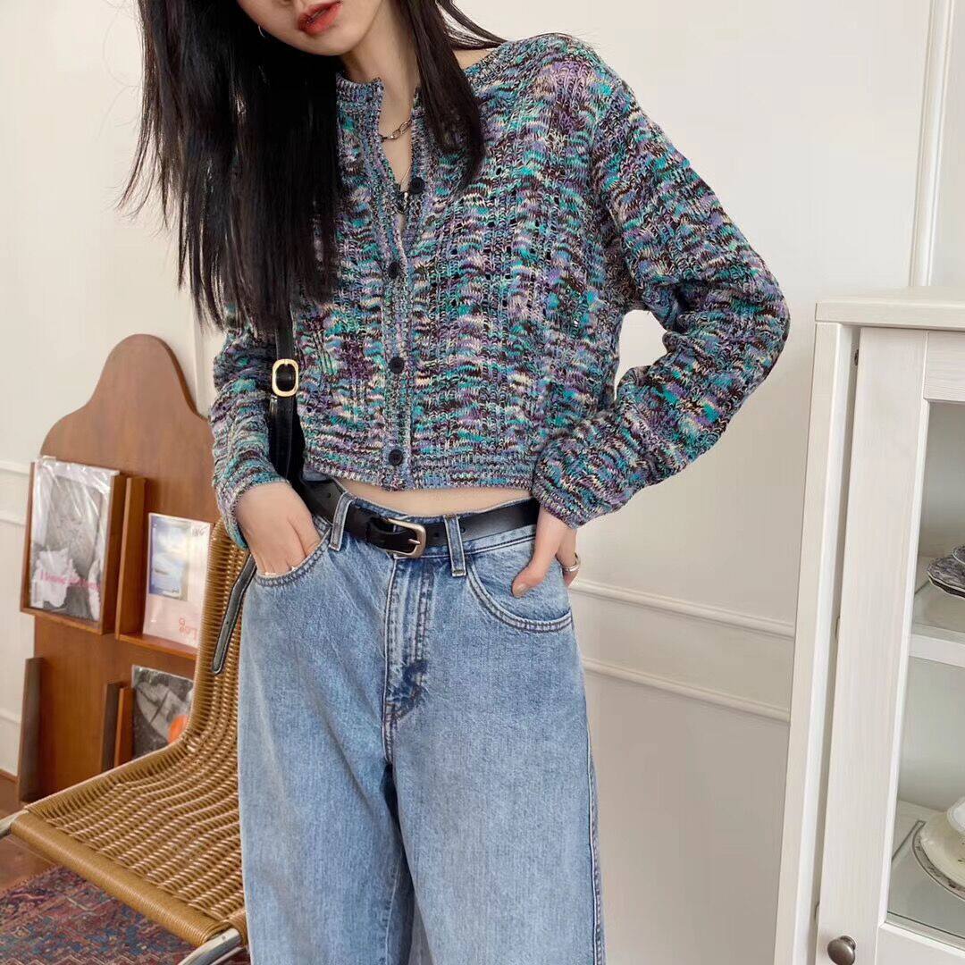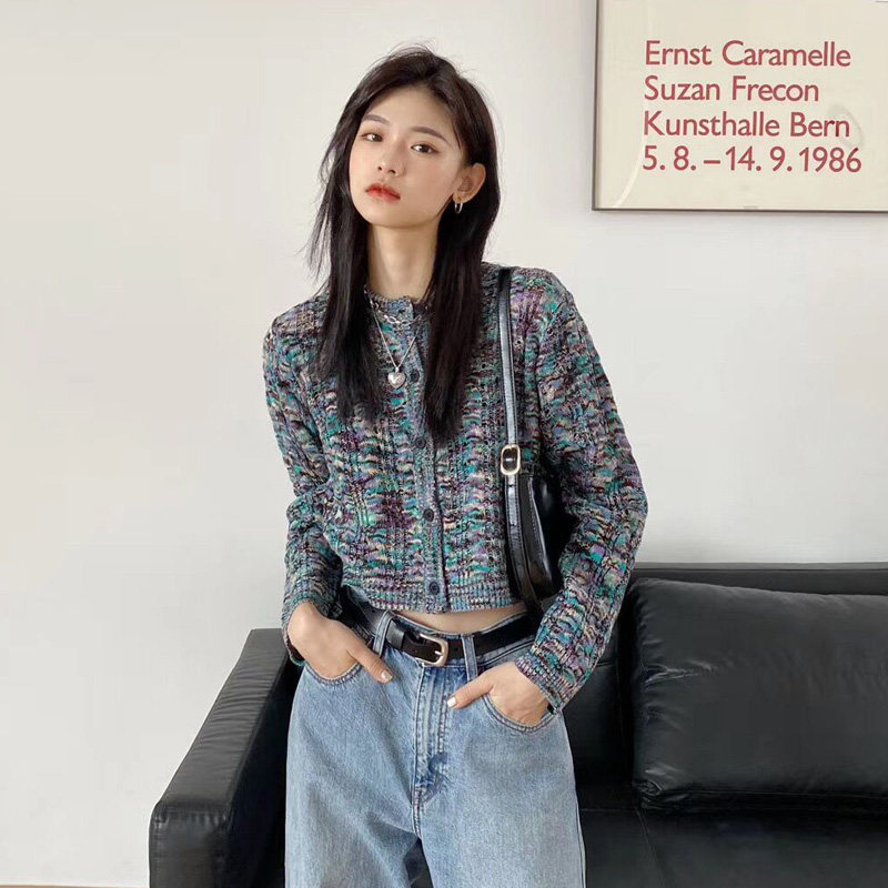 Свитер, японский ретро небольшой дизайнерский короткий трикотажный кардиган, тренд сезона, высокая талия