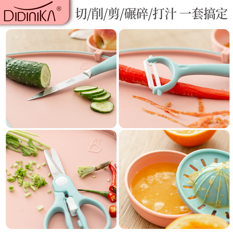 Детский нож, антибактериальная пластиковая разделочная доска, комплект
