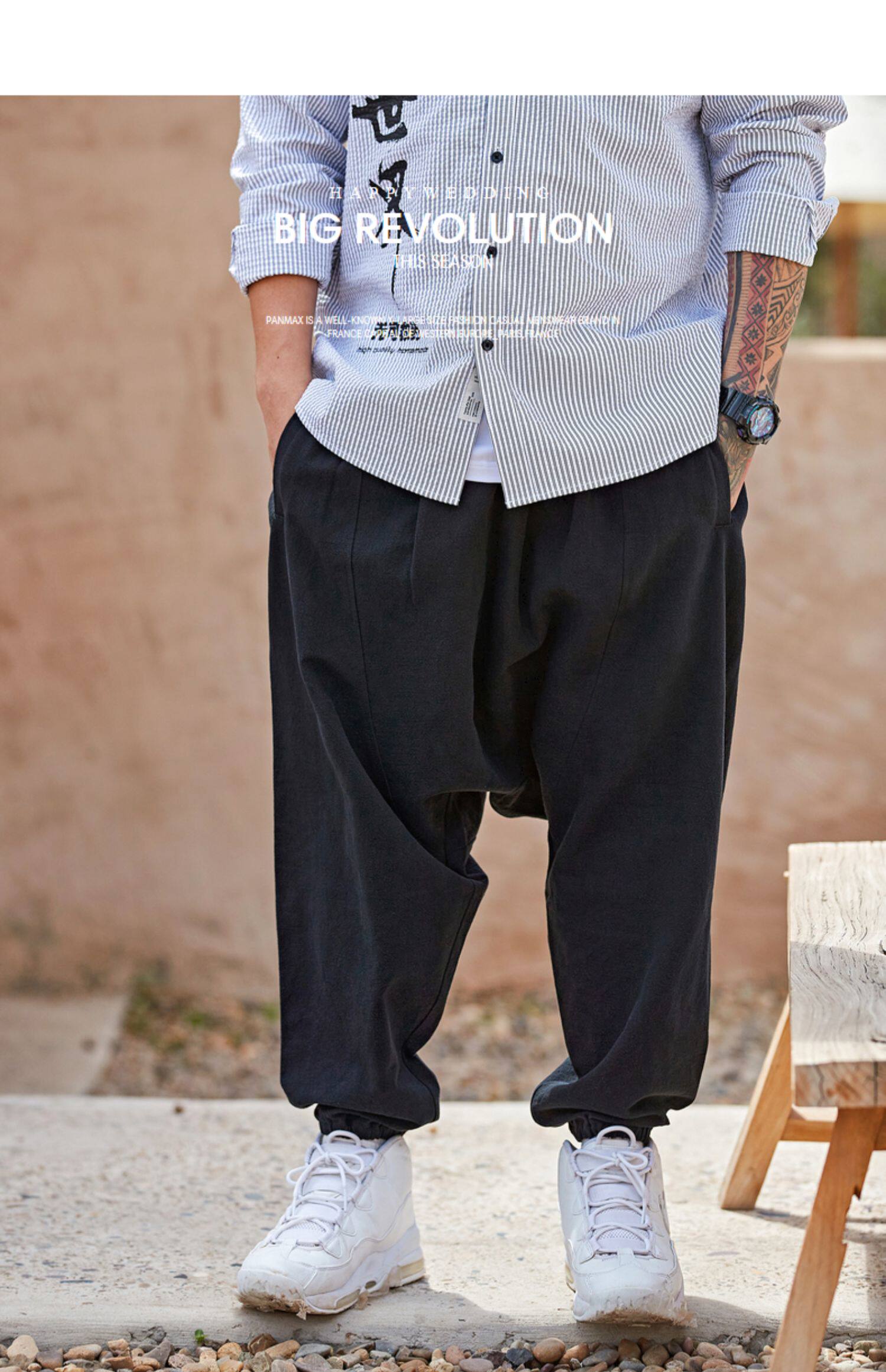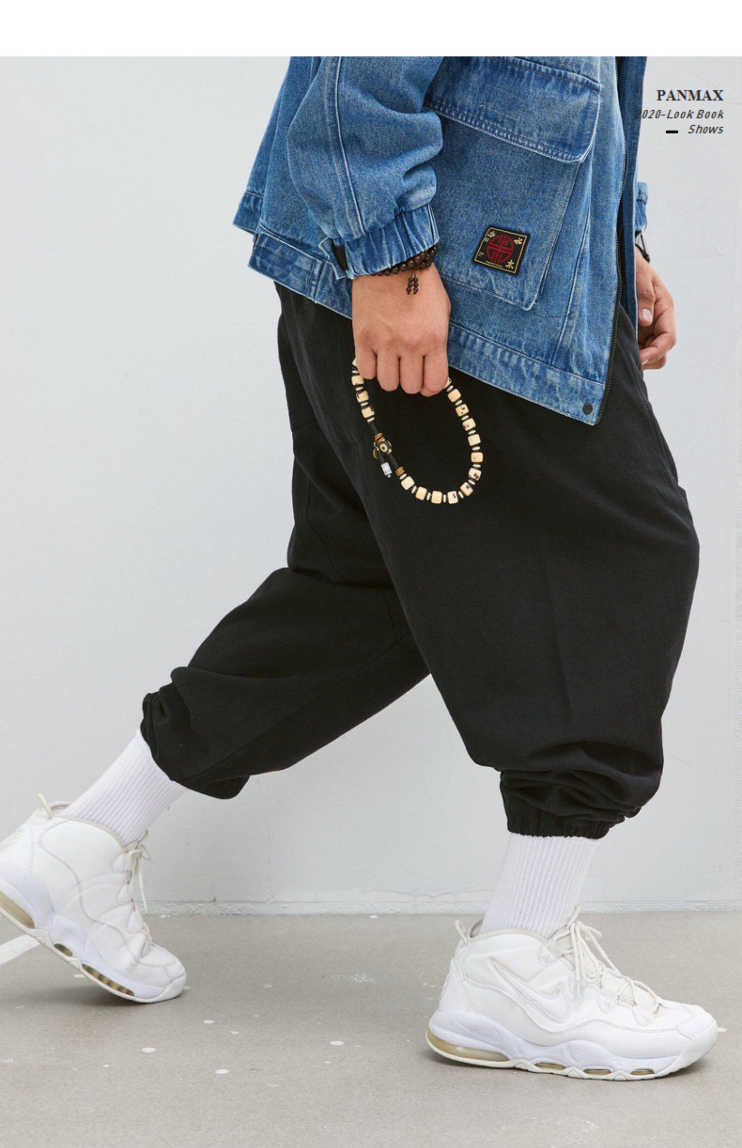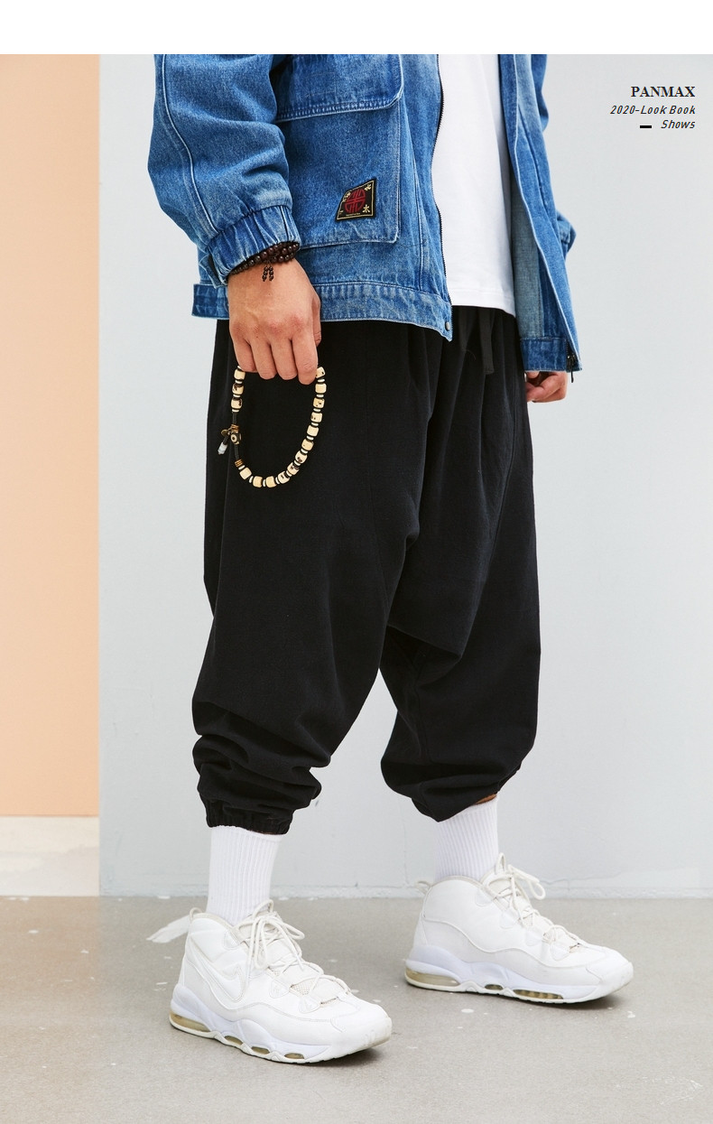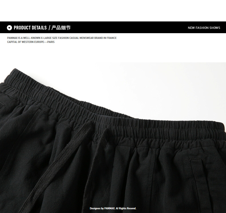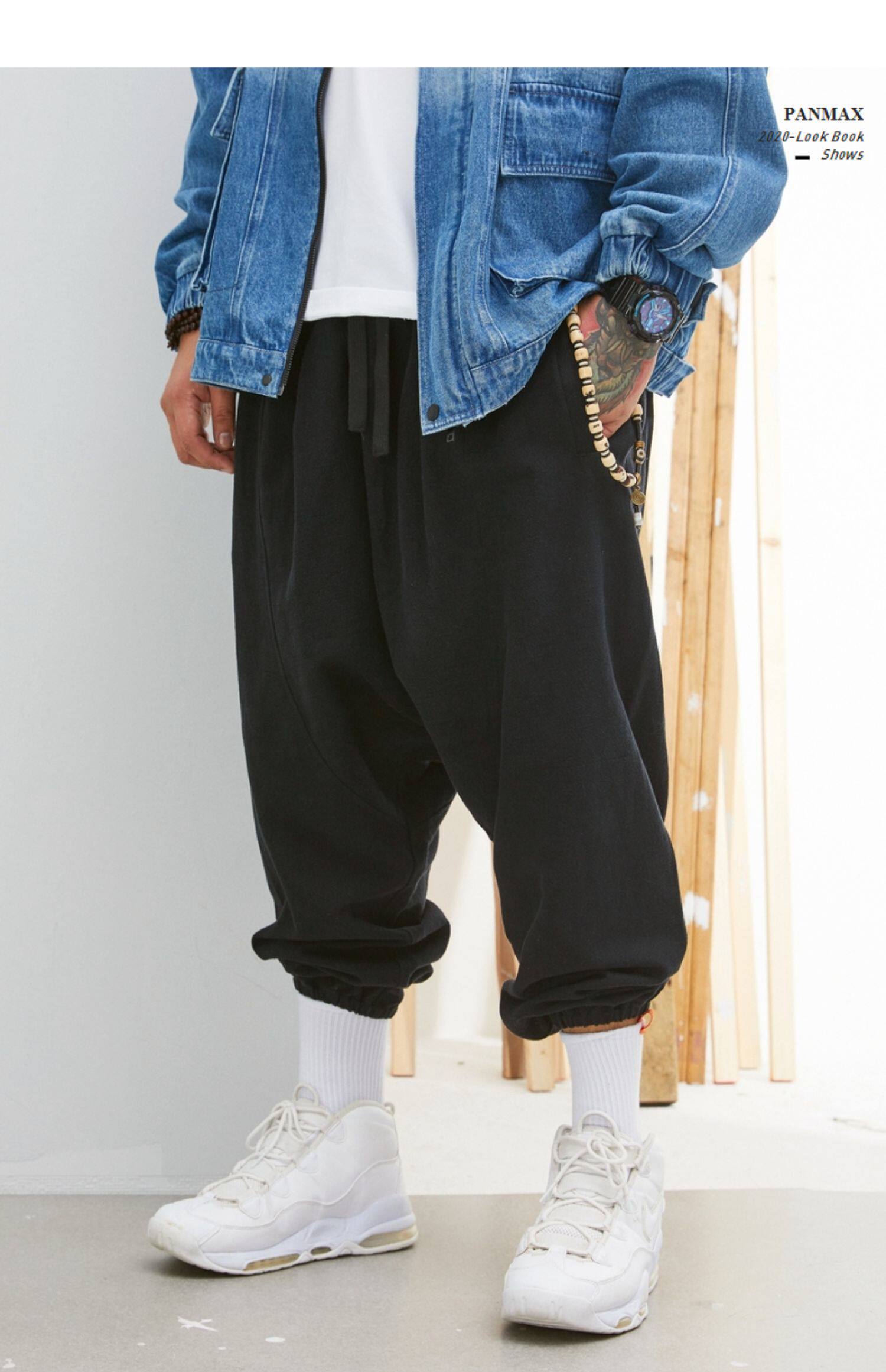 Panmax & Mizuki увеличил код с низким уровнем лампы, бренд, бренд, мужская черная лучшая лучевая брюки.