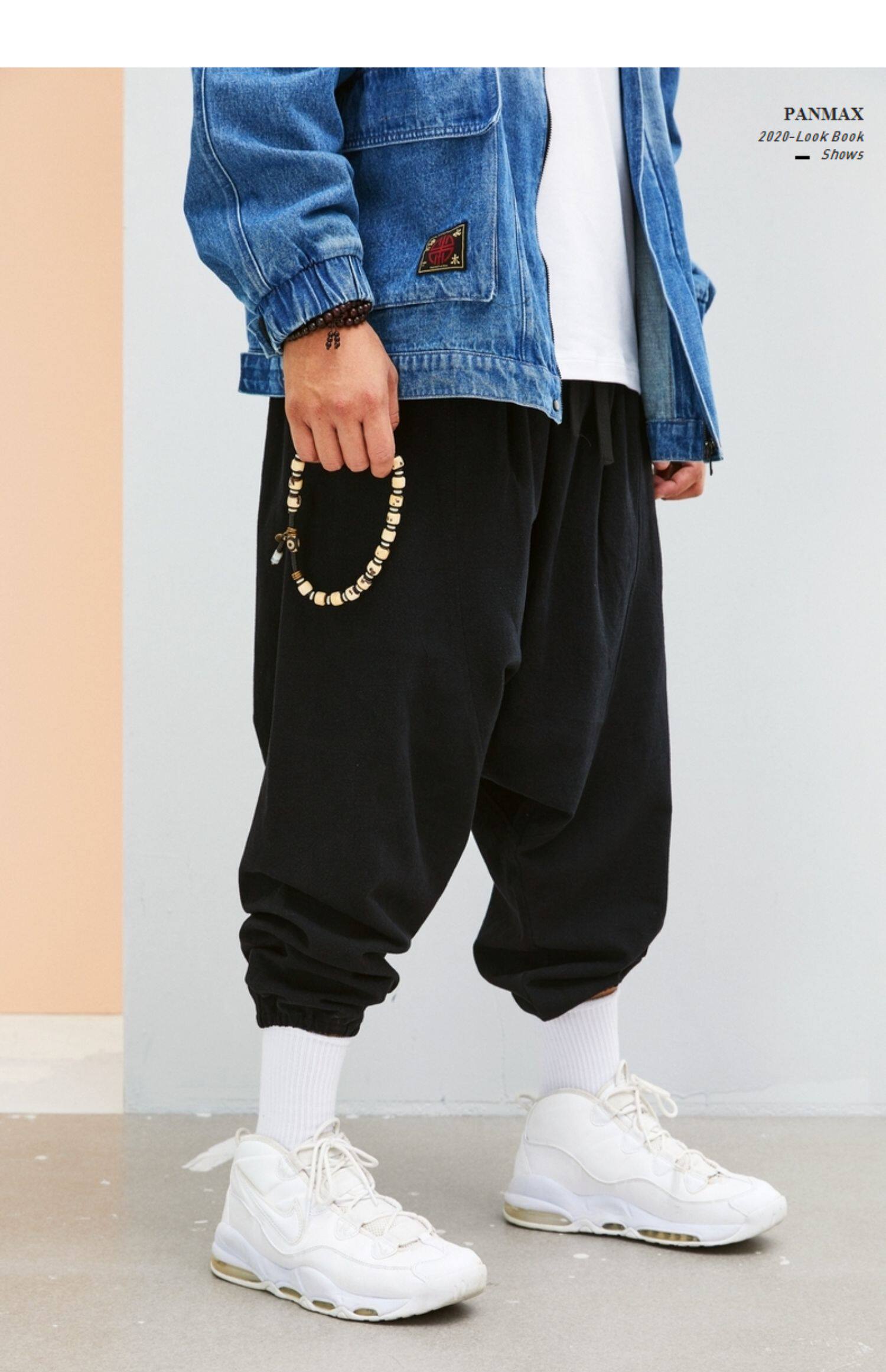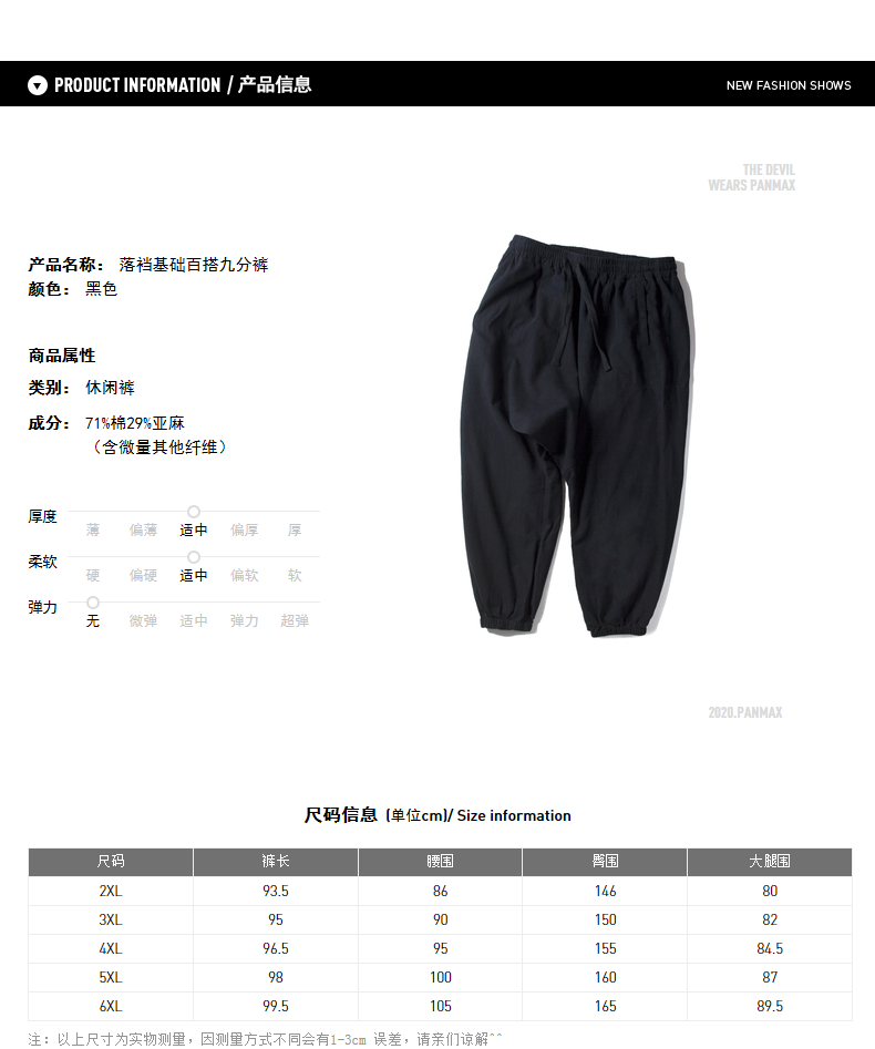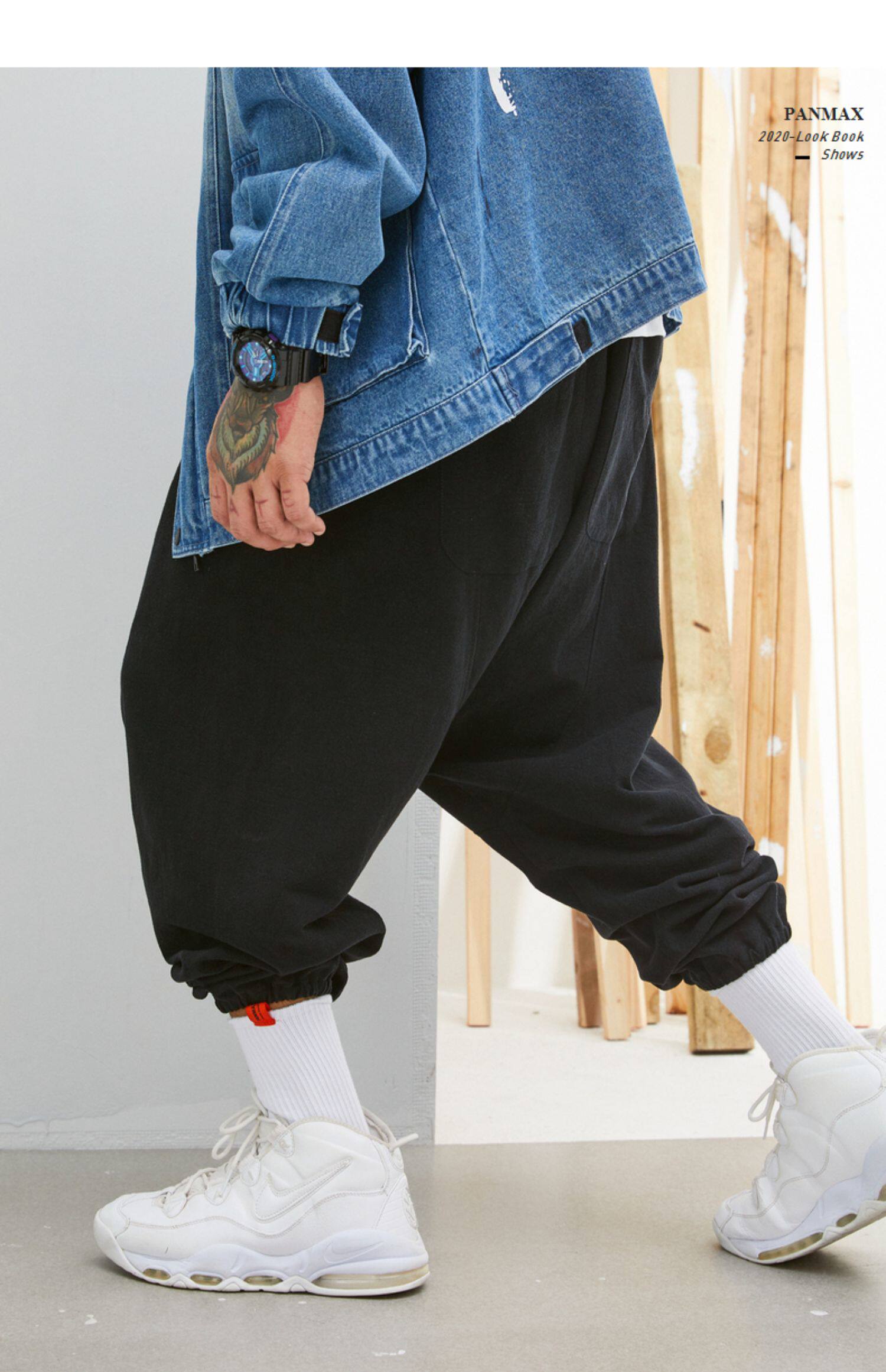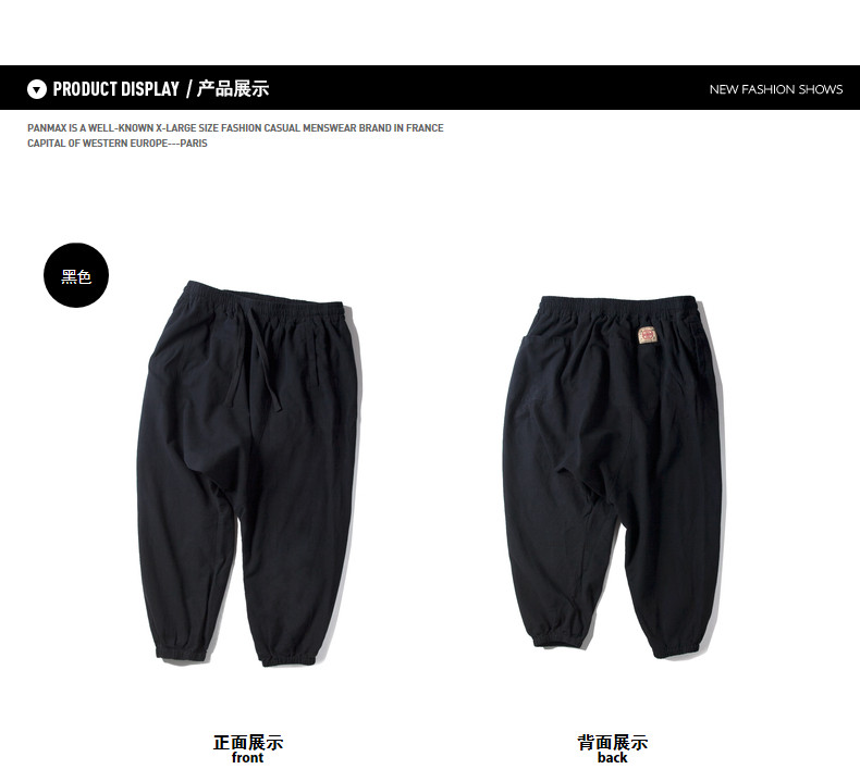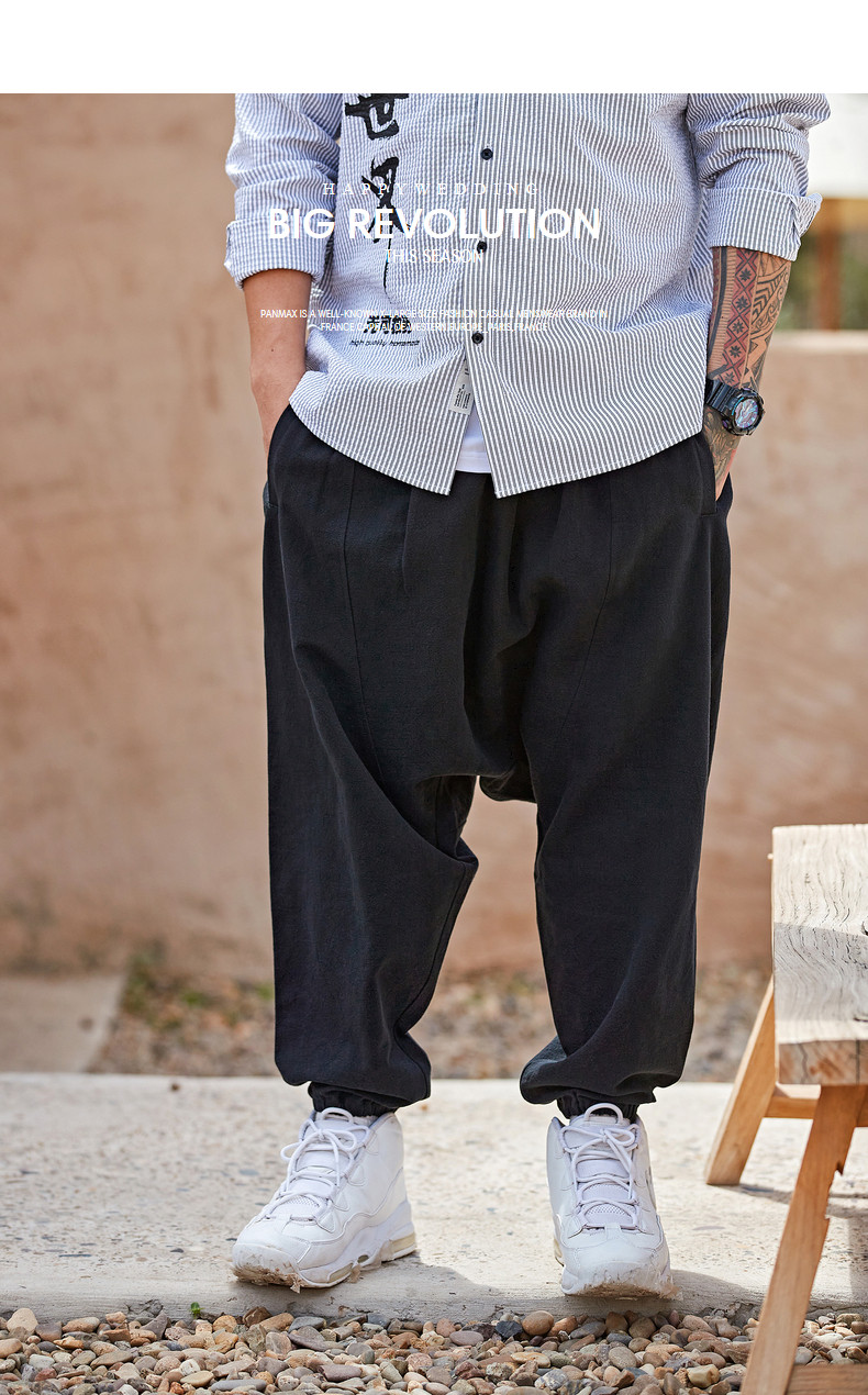 Panmax & Mizuki увеличил код с низким уровнем лампы, бренд, бренд, мужская черная лучшая лучевая брюки.