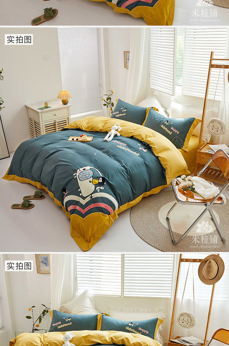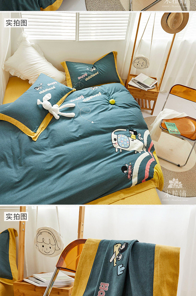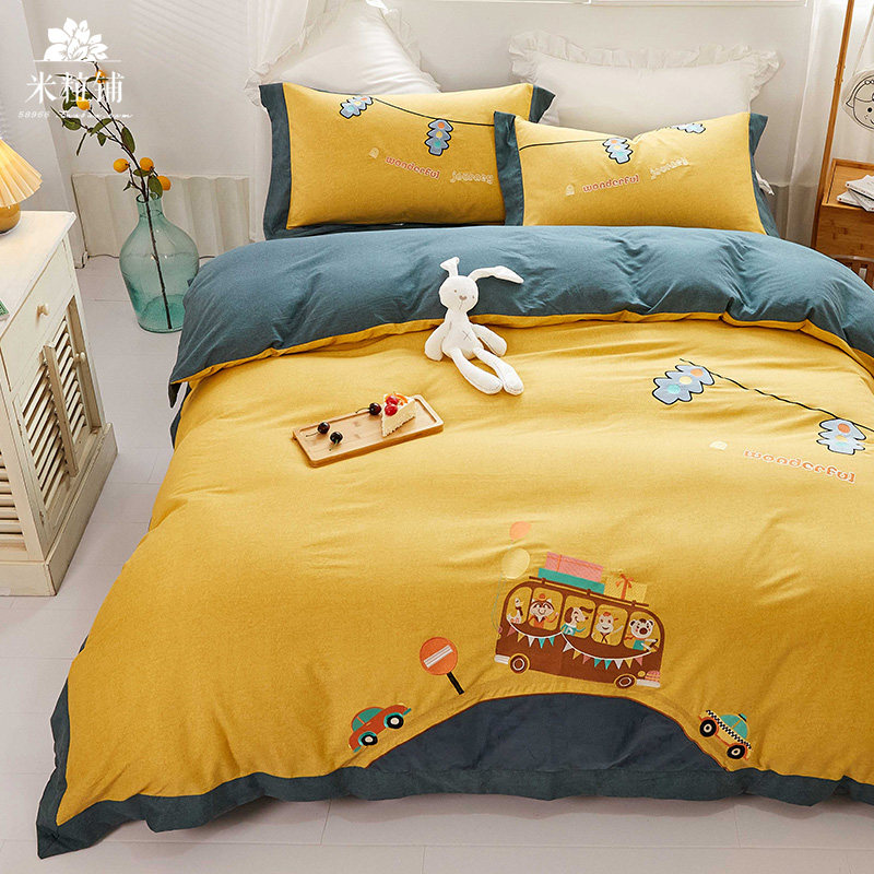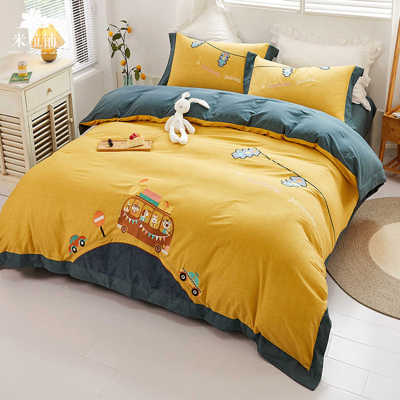 Мультяшный хлопковый утепленный комплект, детский пододеяльник, хлопковое демисезонное покрывало, 4 предмета