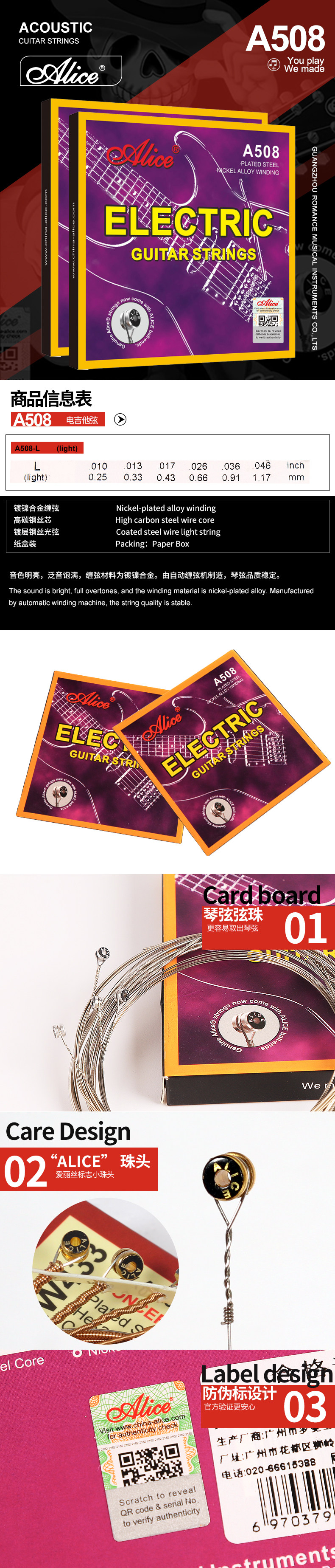 爱丽丝 A508 Электрогитарная струна объемная струна свободная никелевая сплава запутанная струнная противозачаточное покрытие 09 10