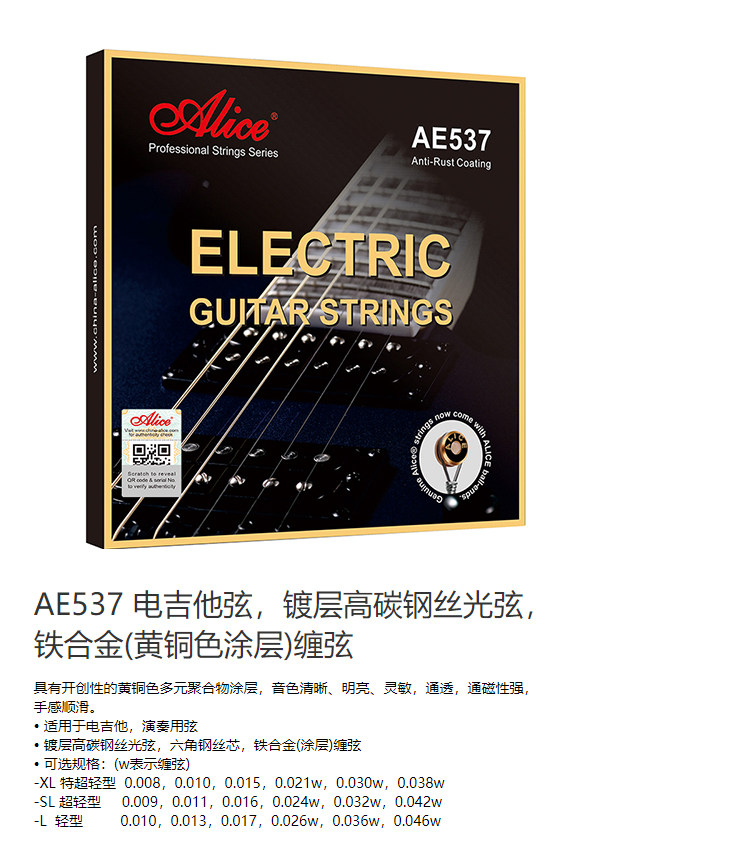 爱丽丝 AE537 009 009 010 Электрогитарная струна массовая струнная покрытие предотвращает ржаво -железной сплав