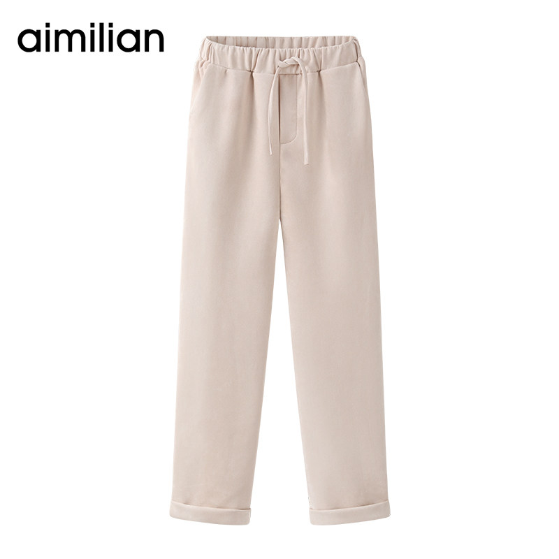 艾米恋 Демисезонные штаны для отдыха, японские леггинсы, оверсайз, свободный прямой крой, стройный силуэт, высокая талия