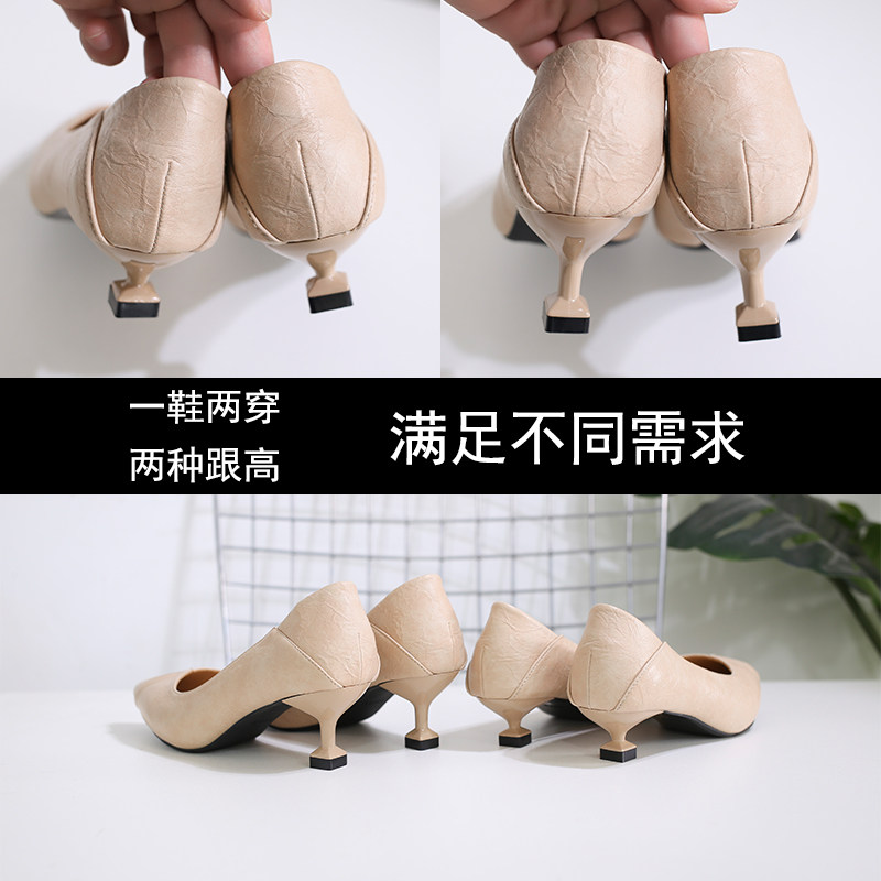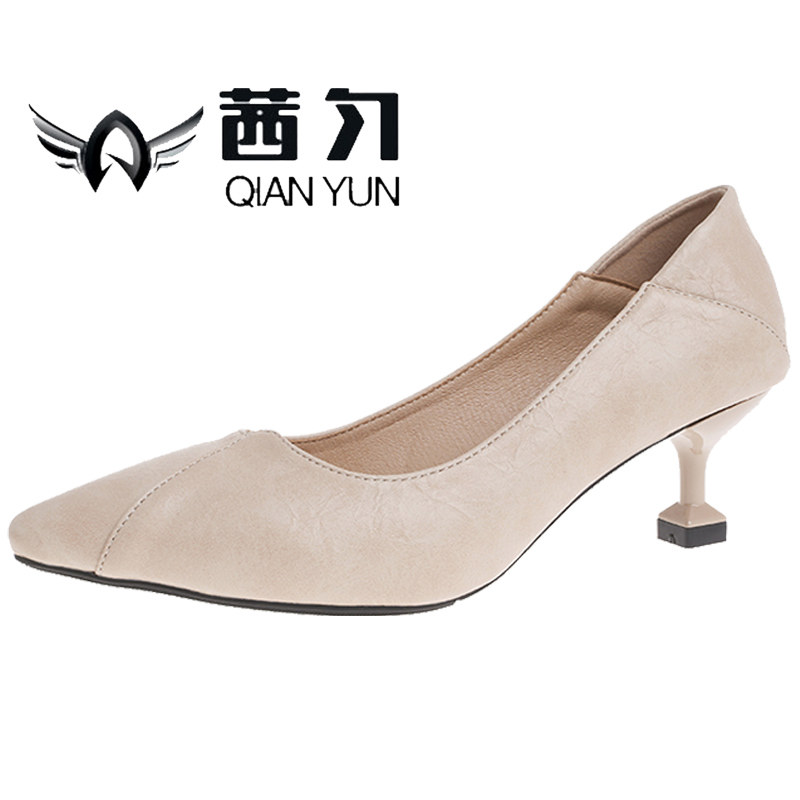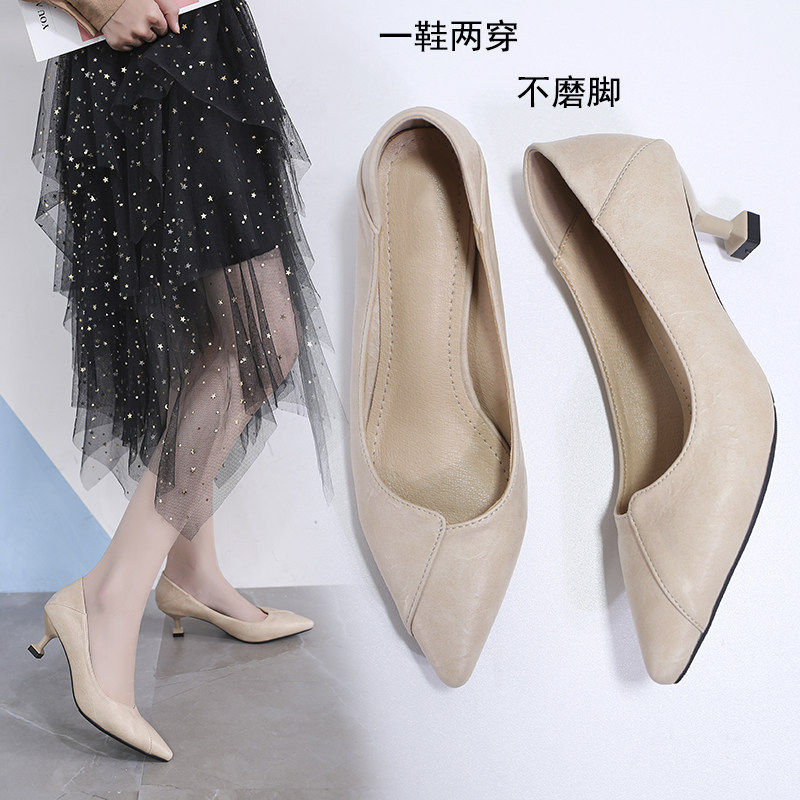 Две одеты в туфли с высокими туфлями с тонкими каблуками в 2020 году новая весна и осенняя мода универсальная заостренная легкая туфли на каблуках кошки