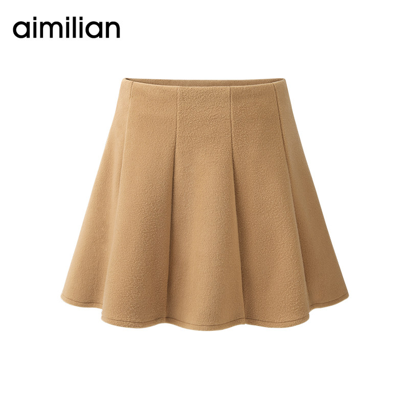 艾米恋 Шерстяная демисезонная мини-юбка, желтовато-коричневая юбка в складку, подходит для подростков, высокая талия, А-силуэт