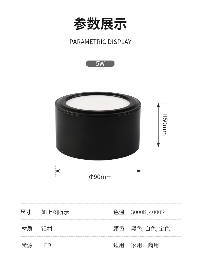 - Белый/5 ват/теплый белый свет 4000K/с пружинным отверстием 5-8,5 см.