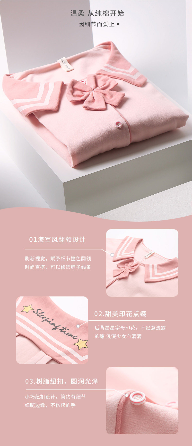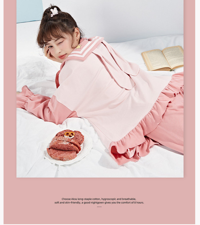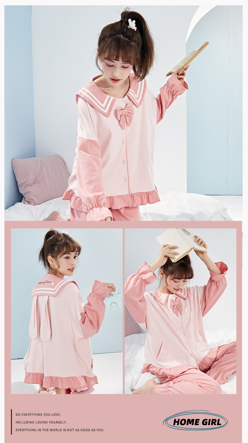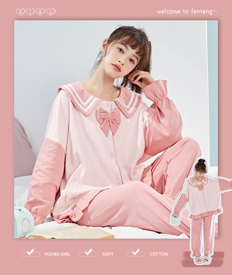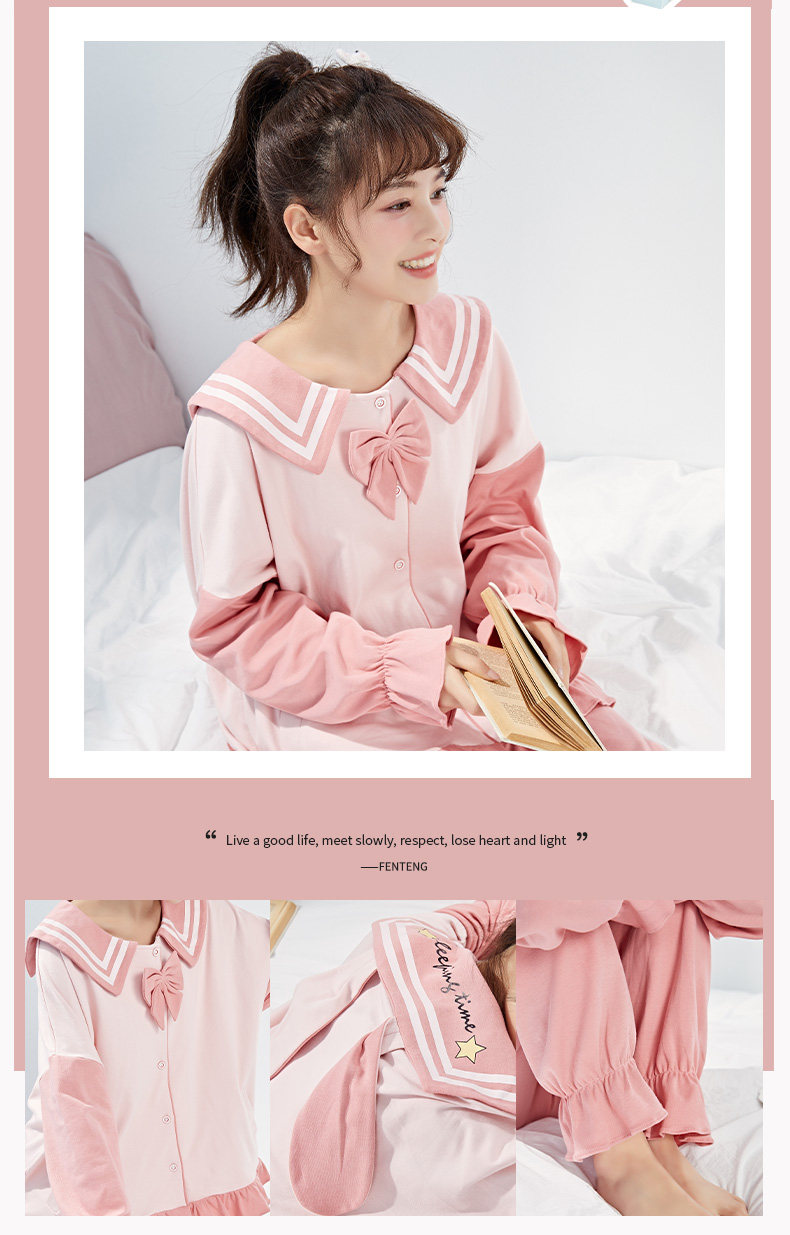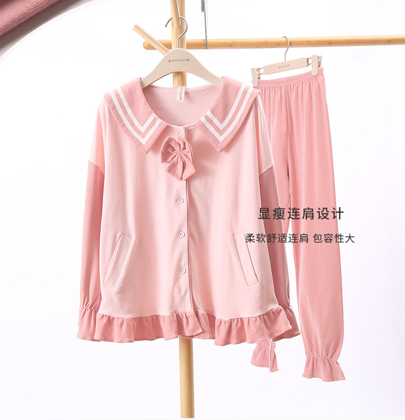 芬腾 Хлопковая осенняя пижама, лонгслив, милый кардиган, хлопковый комплект, свободный крой