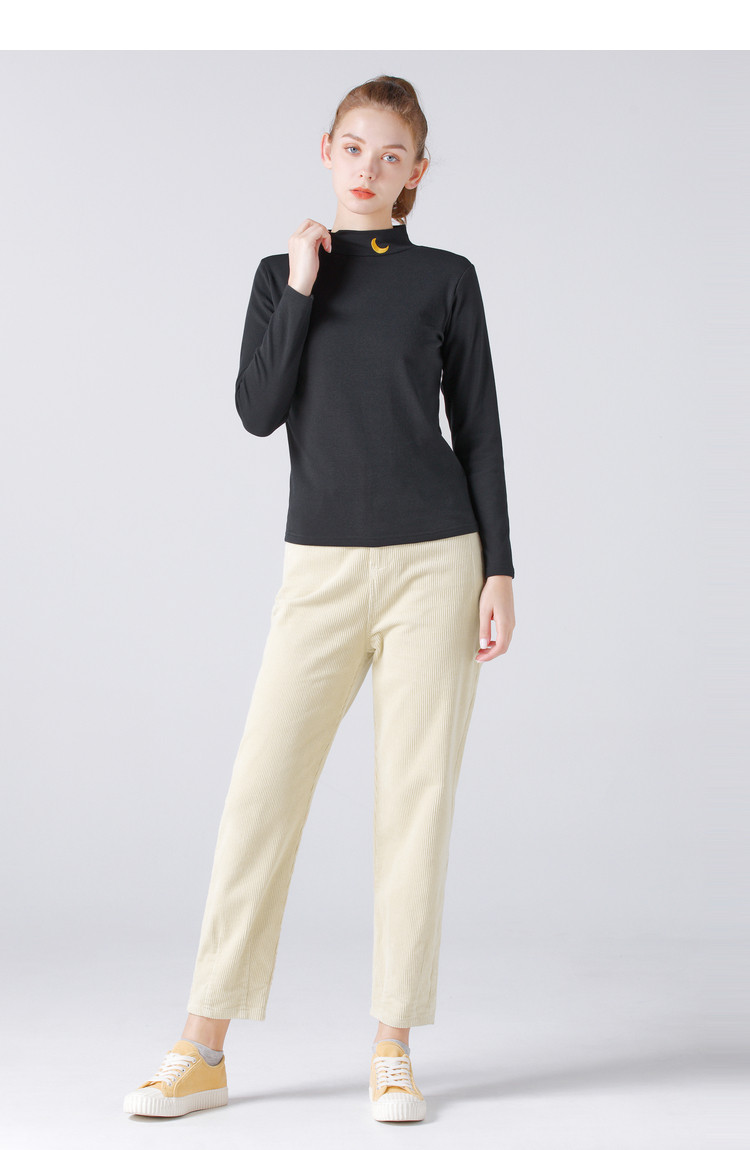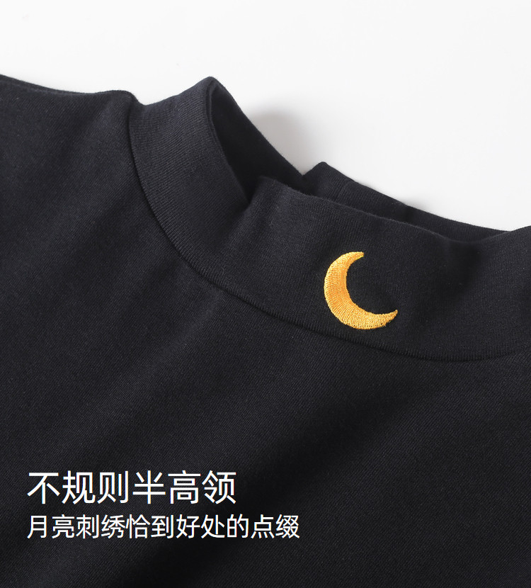 艾米恋 Черная цветная футболка, демисезонный хлопковый базовый приятный телу лонгслив, высокий воротник, с рукавом, 2020