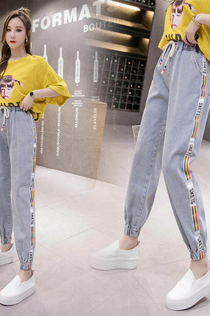 Осенние джинсы, штаны для отдыха, большой размер, коллекция 2021, в корейском стиле, эластичная талия