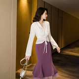 Оригинальная осенняя длинная юбка, крой «рыбий хвост», с акцентом на бедрах, 2020, высокая талия