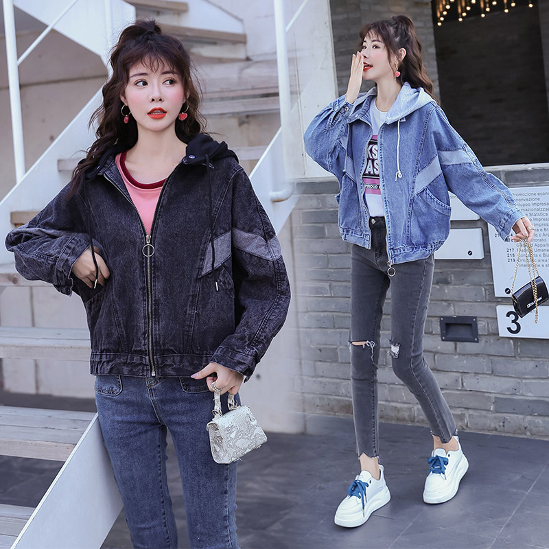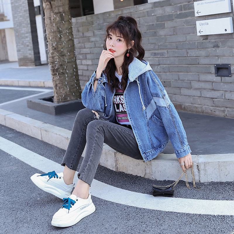 Tide, модная джинсовая весенняя осенняя куртка с капюшоном, 2020 года, в корейском стиле, свободный крой