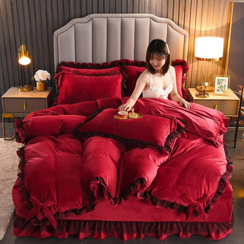 Комплект из утолщенного хрусталя, красное зимнее фланелевое покрывало, пододеяльник, 4 предмета