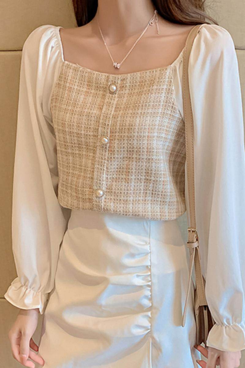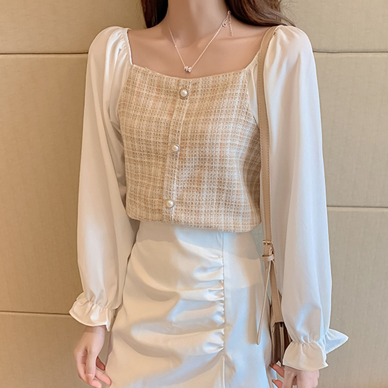 Шифоновая рубашка, большой размер, рукава фонарики, в западном стиле
