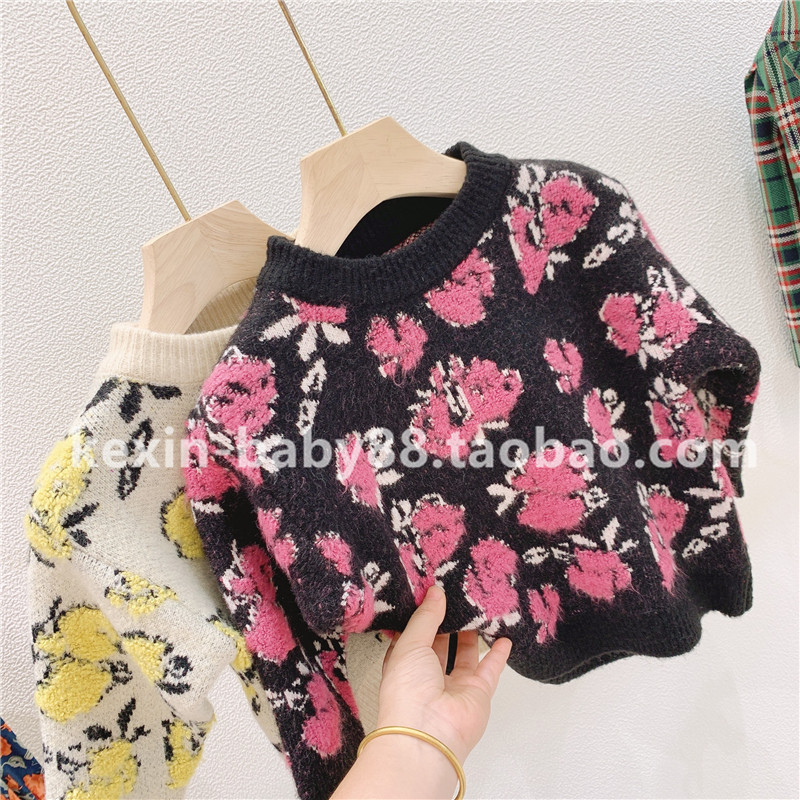 Осенний ретро трикотажный свитер с круглым воротником, в корейском стиле, детская одежда, 2020 года, высокая талия
