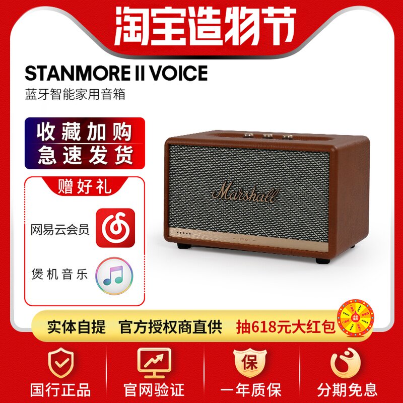 Marshall Stanmore II Voice Marshall Bluetooth -динамик AI Smart Audio Alarm Targe для домашнего использования