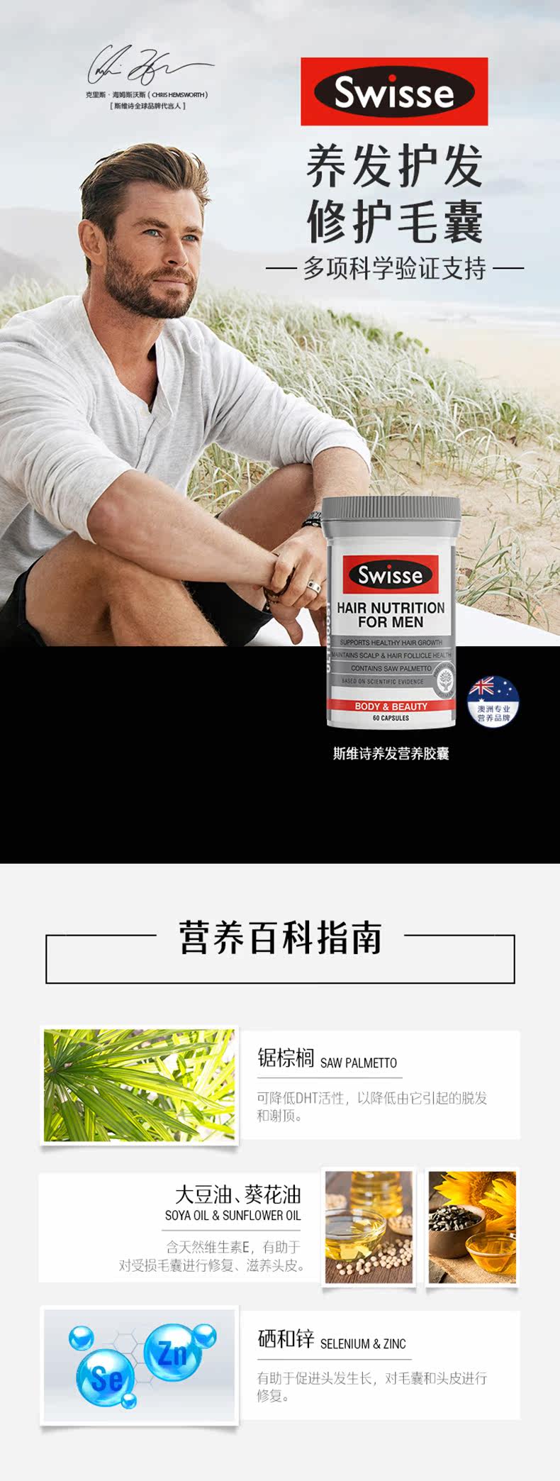 Австралия Swisse Swelle Ultiboost Мужское питание для волос