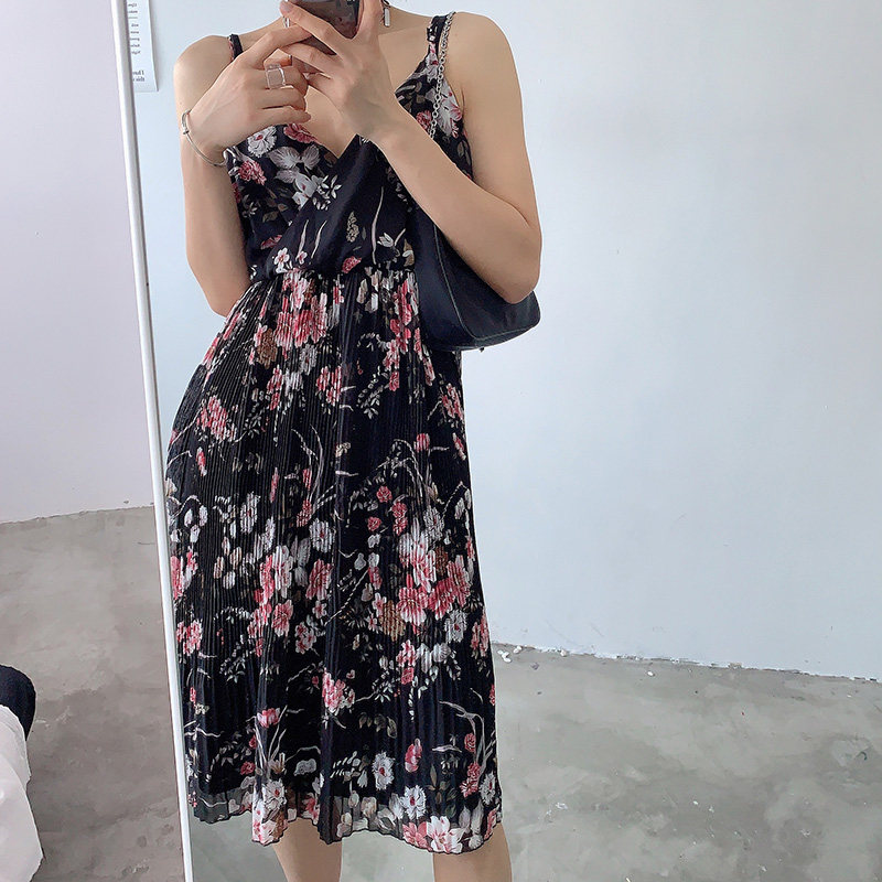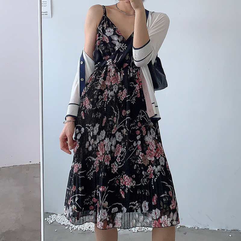 Ретро платье-комбинация, приталенный шифоновый корсет, платье, юбка, цветочный принт, V-образный вырез, подходит для подростков