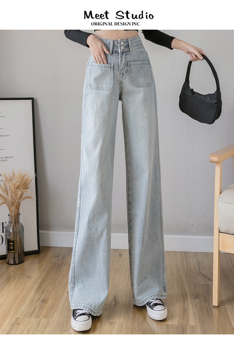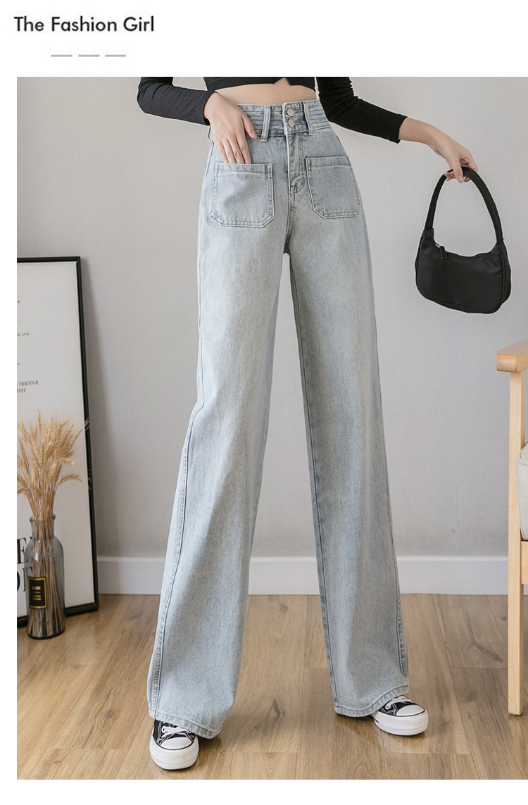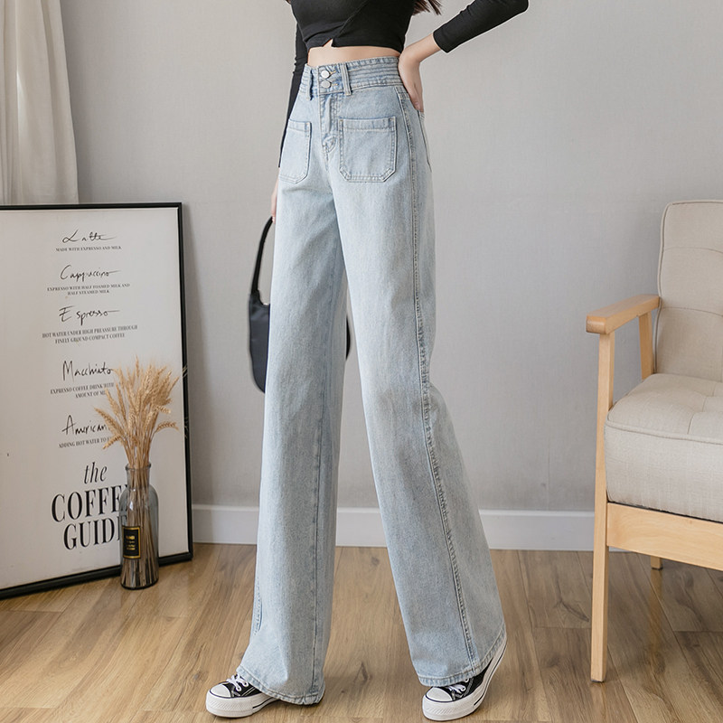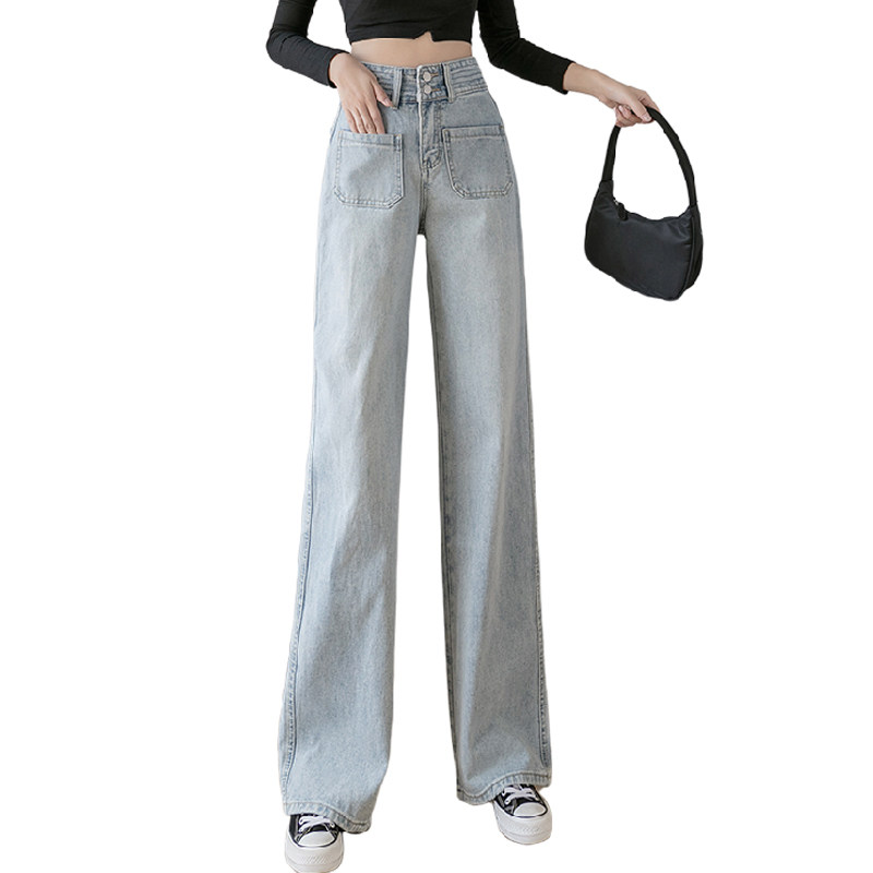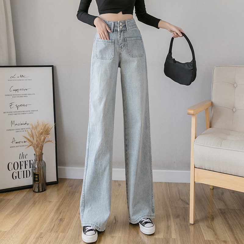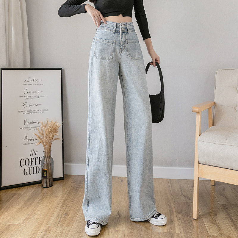 Осенние джинсы, штаны, высокая талия, свободный прямой крой