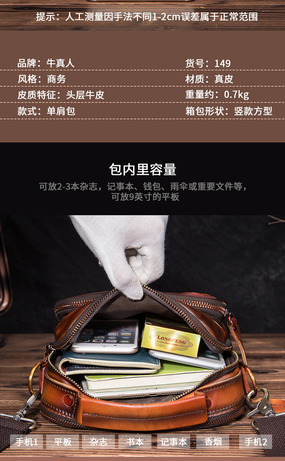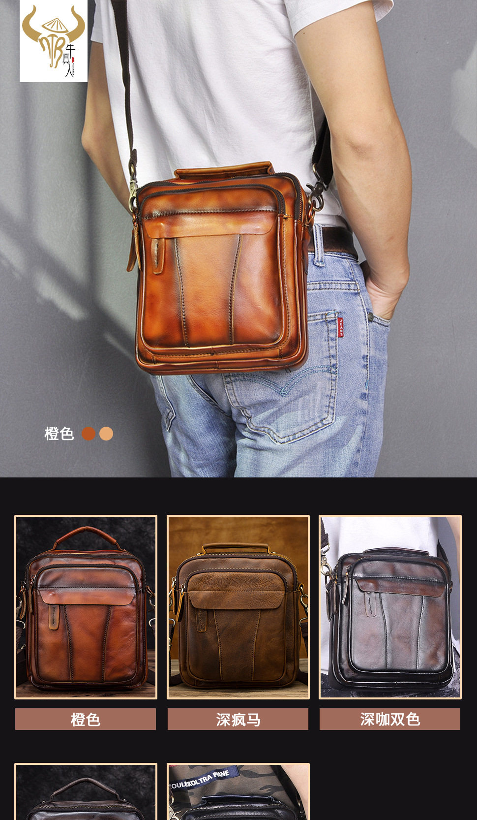 Оригинальная ретро кожаная барсетка, сумка на одно плечо, сумка через плечо, воловья кожа, из натуральной кожи