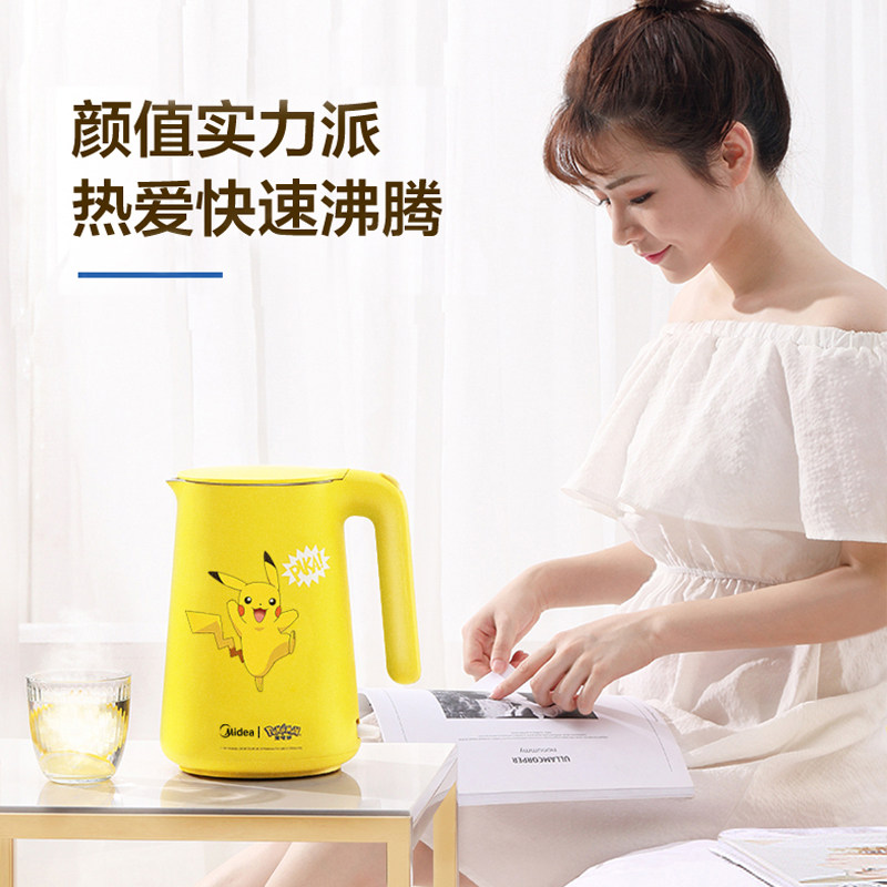 Midea Pikachu Electric Heatlest Cettle. Домохозяйство автоматическое питание от мощности и изоляции, интегрированная покемон чайник SH15E203PK