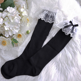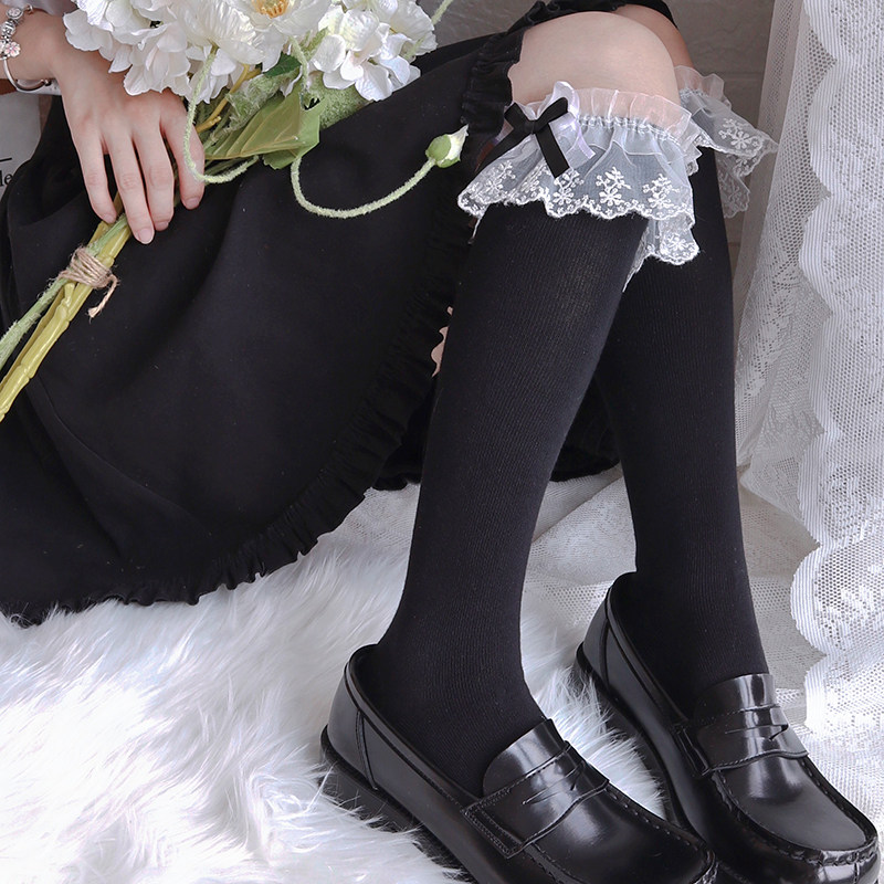 Хлопковые японские милые кружевные носки с бантиком, стиль Лолита, средней длины, кружевное платье