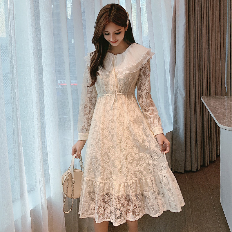 Кружевное осеннее платье, приталенная кукла, приталенный корсет, длинная юбка, коллекция 2021, новая коллекция, средней длины