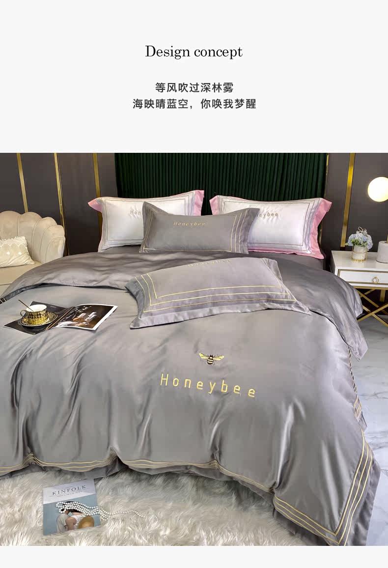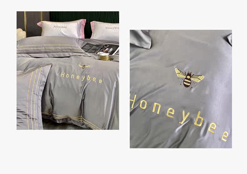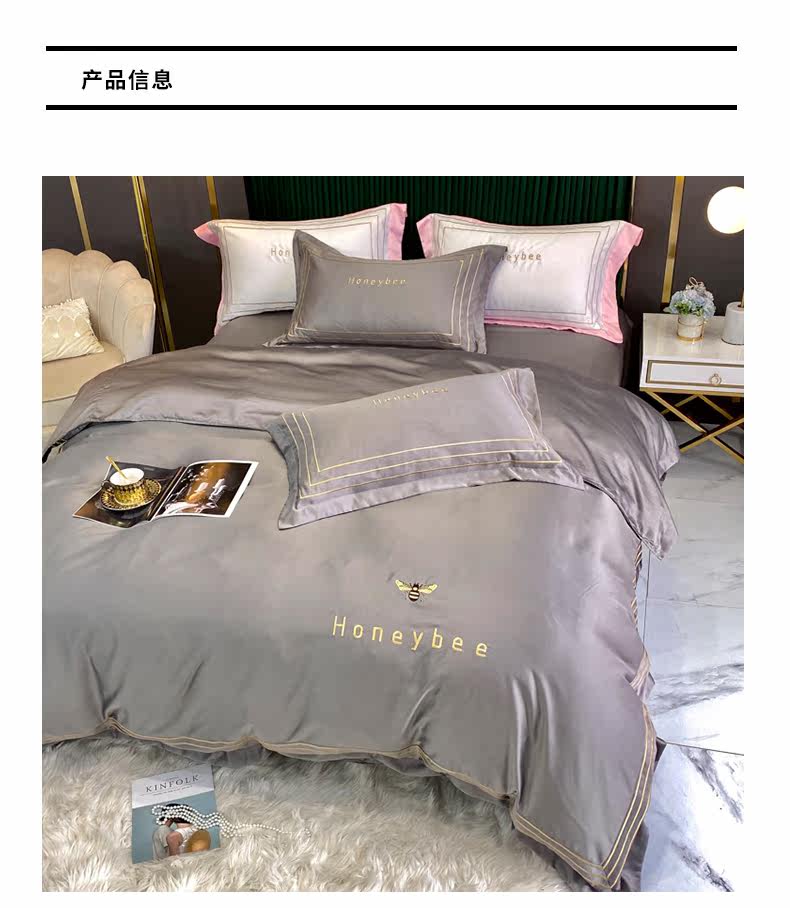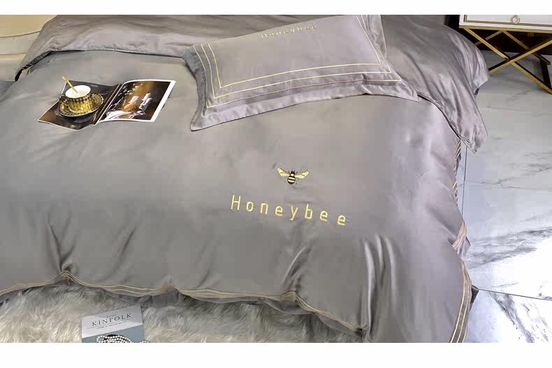 南极人 Шелковый комплект, шелковая современная простыня, пододеяльник, 4 предмета, скандинавский стиль, простой и элегантный дизайн