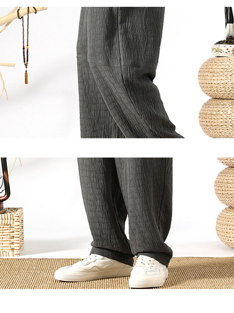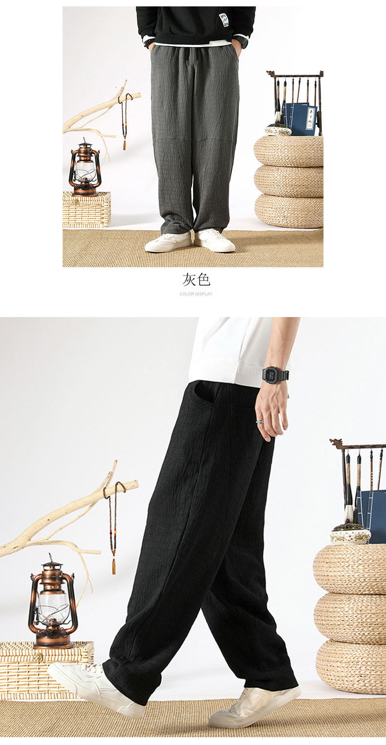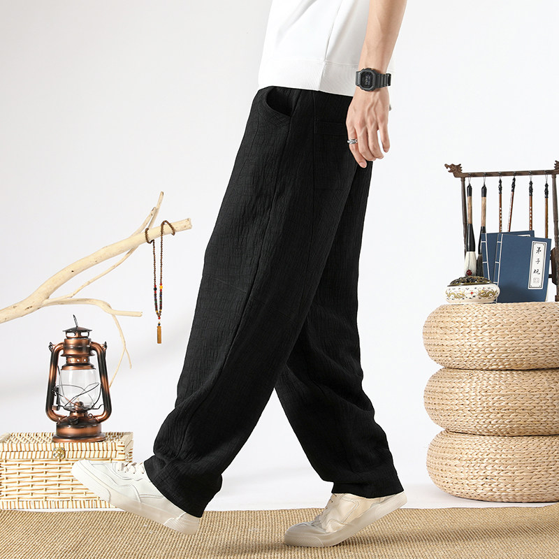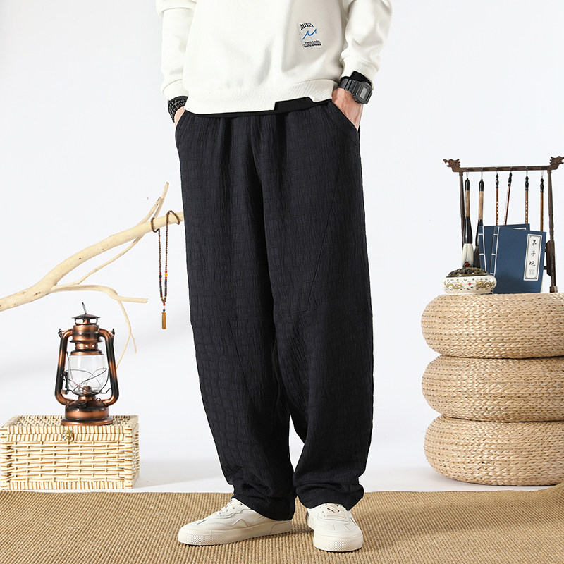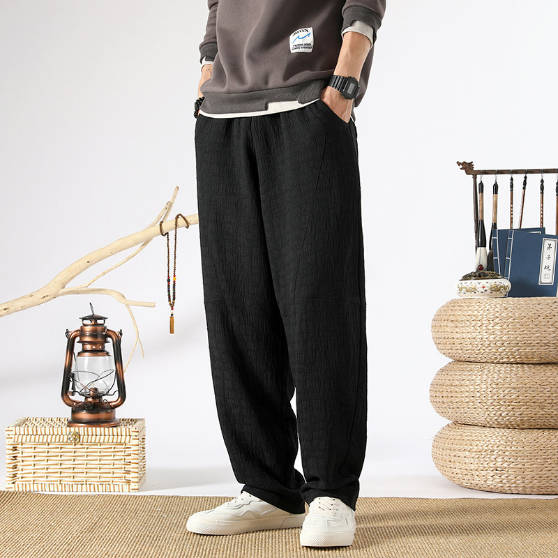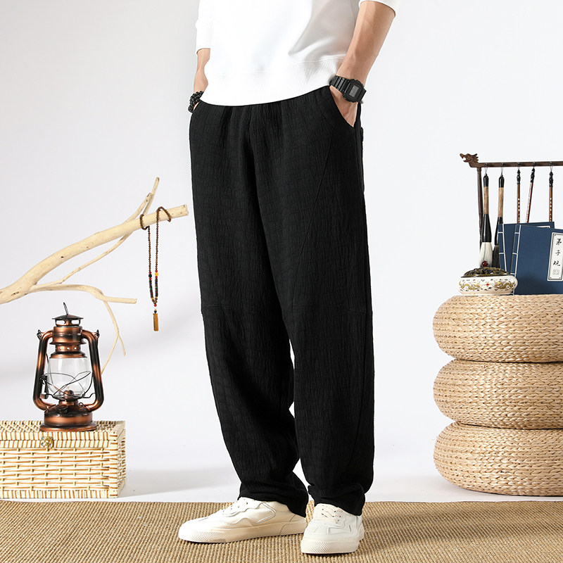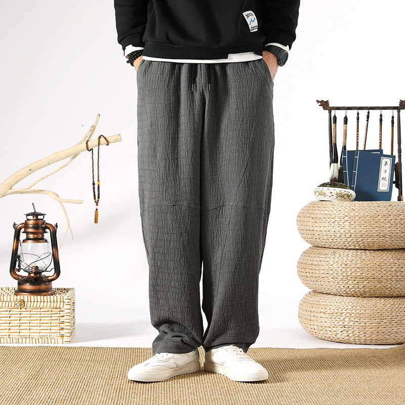 Осенние ретро штаны, китайский стиль, свободный прямой крой, из хлопка и льна, большой размер