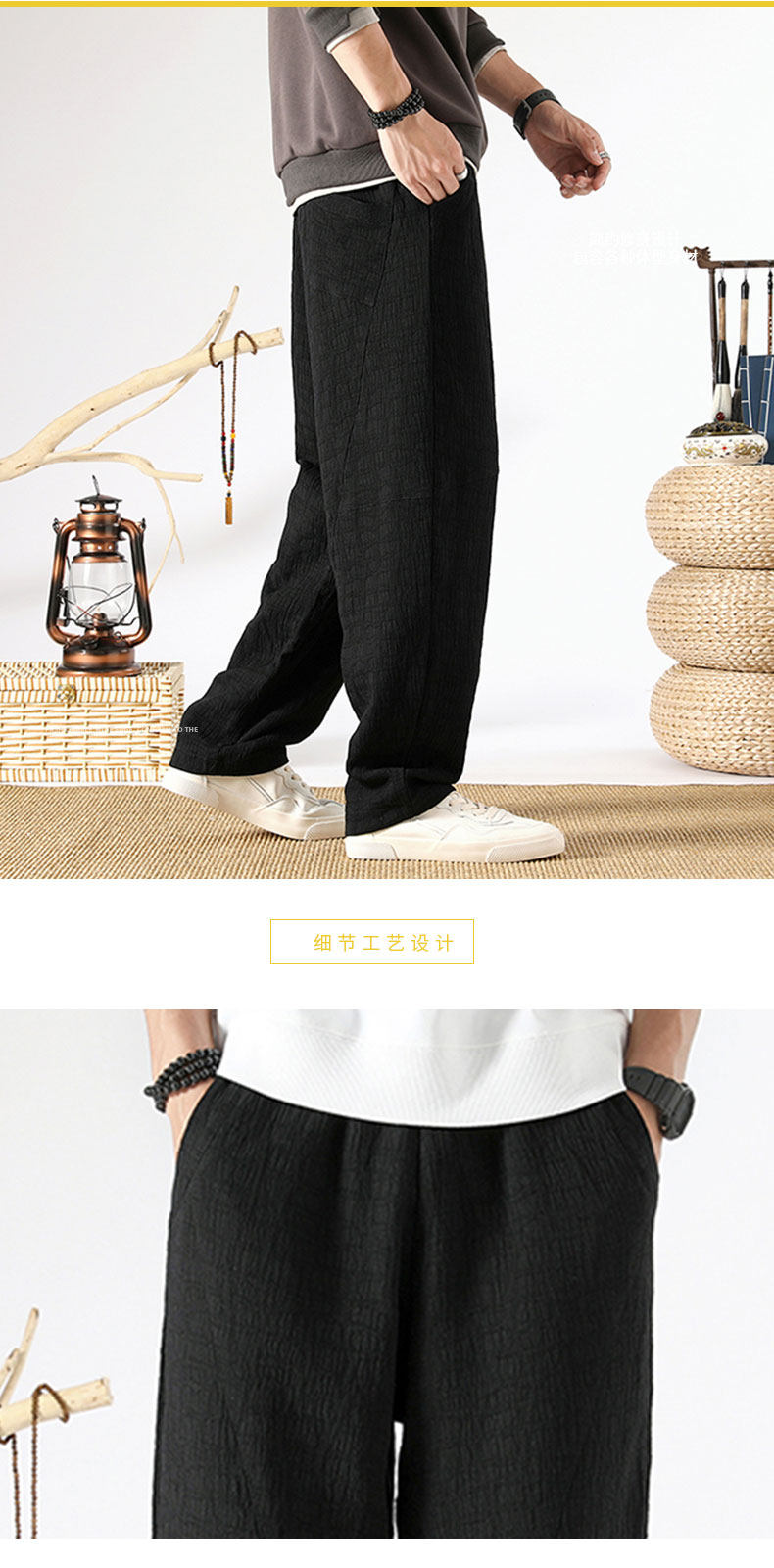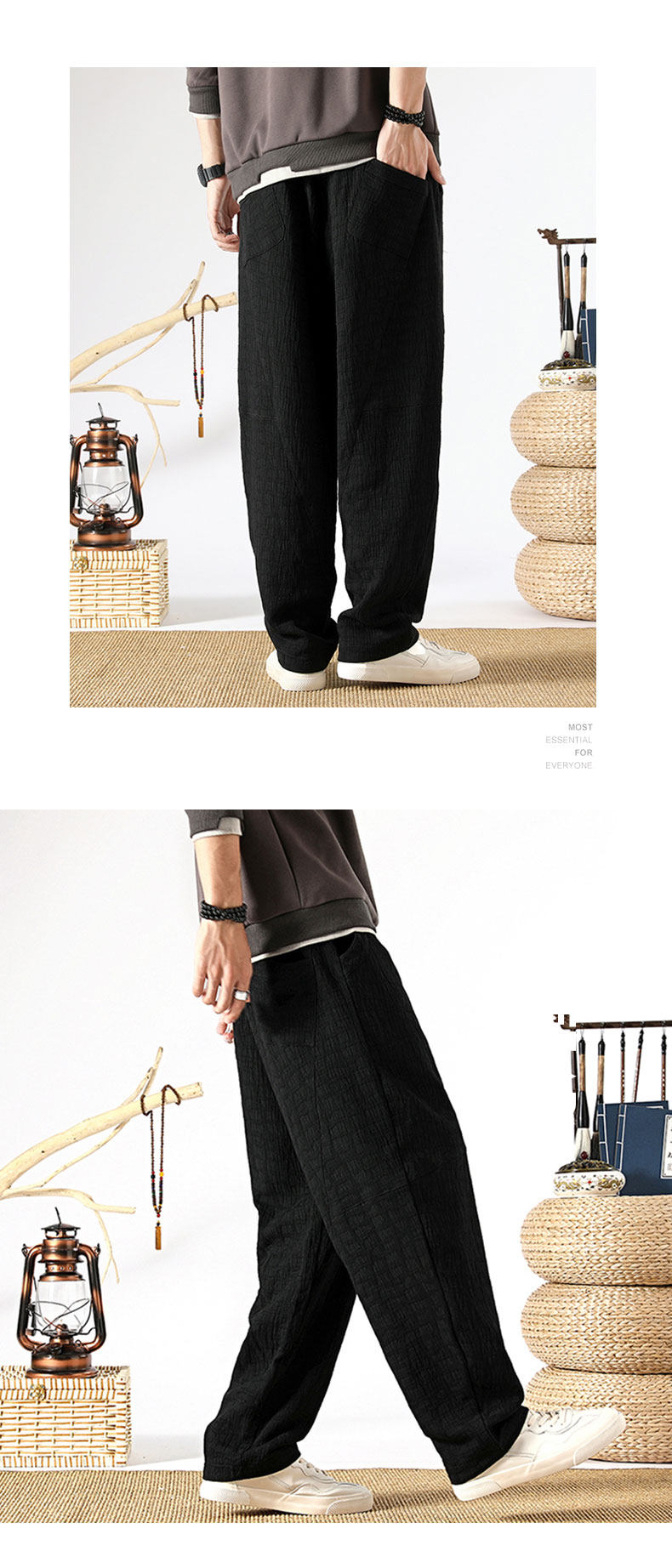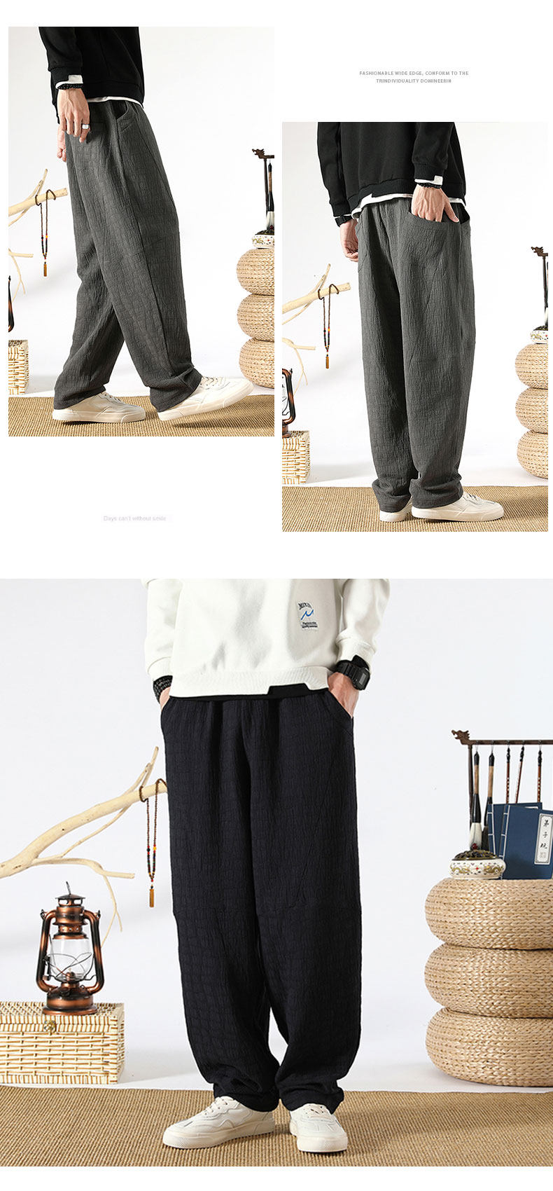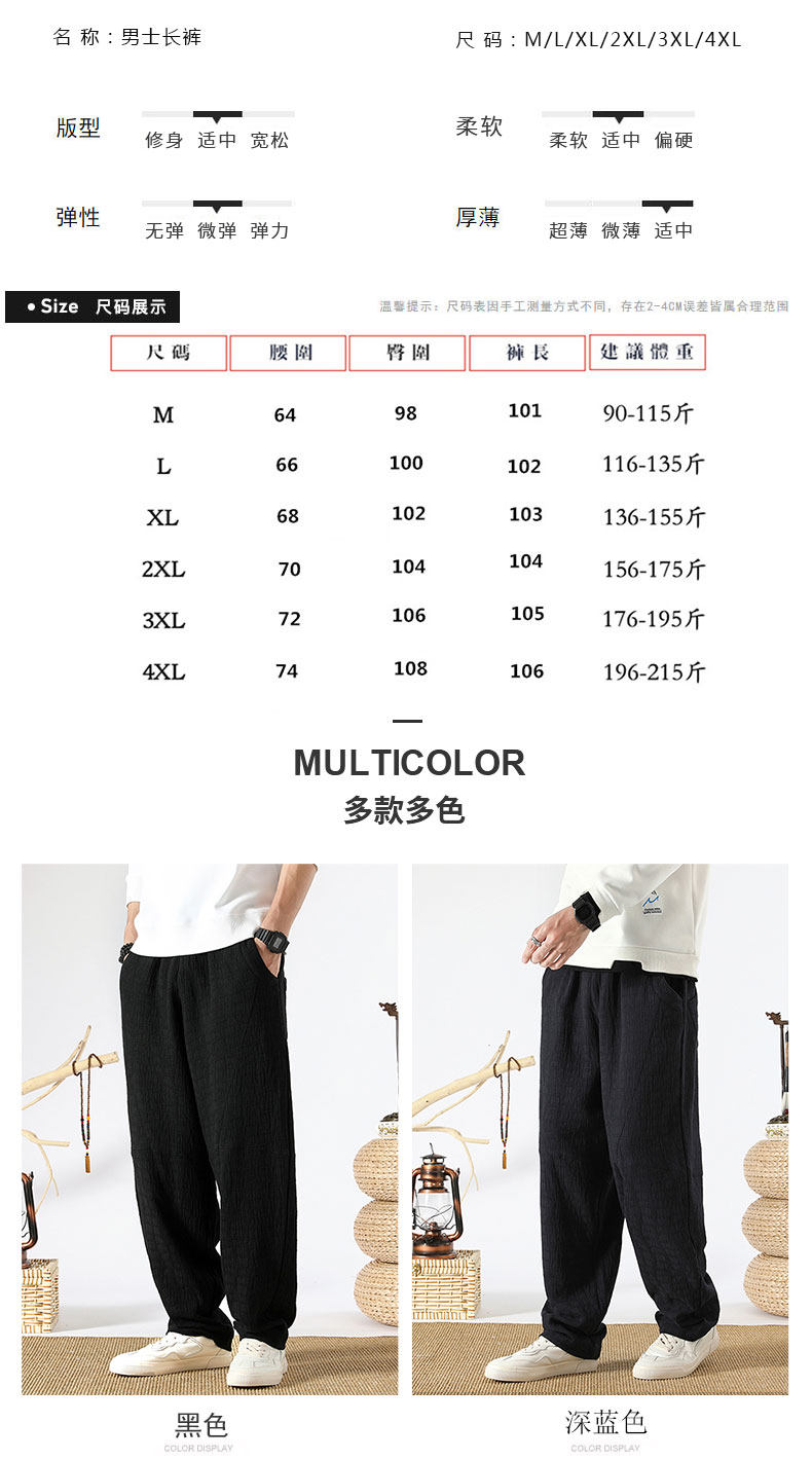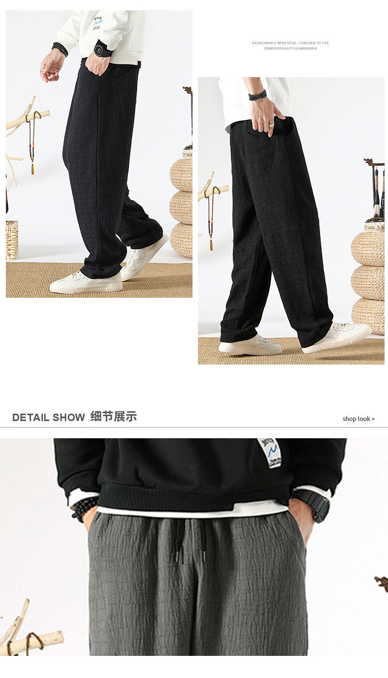 Осенние ретро штаны, китайский стиль, свободный прямой крой, из хлопка и льна, большой размер