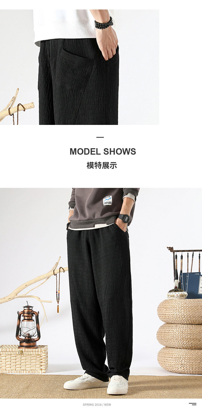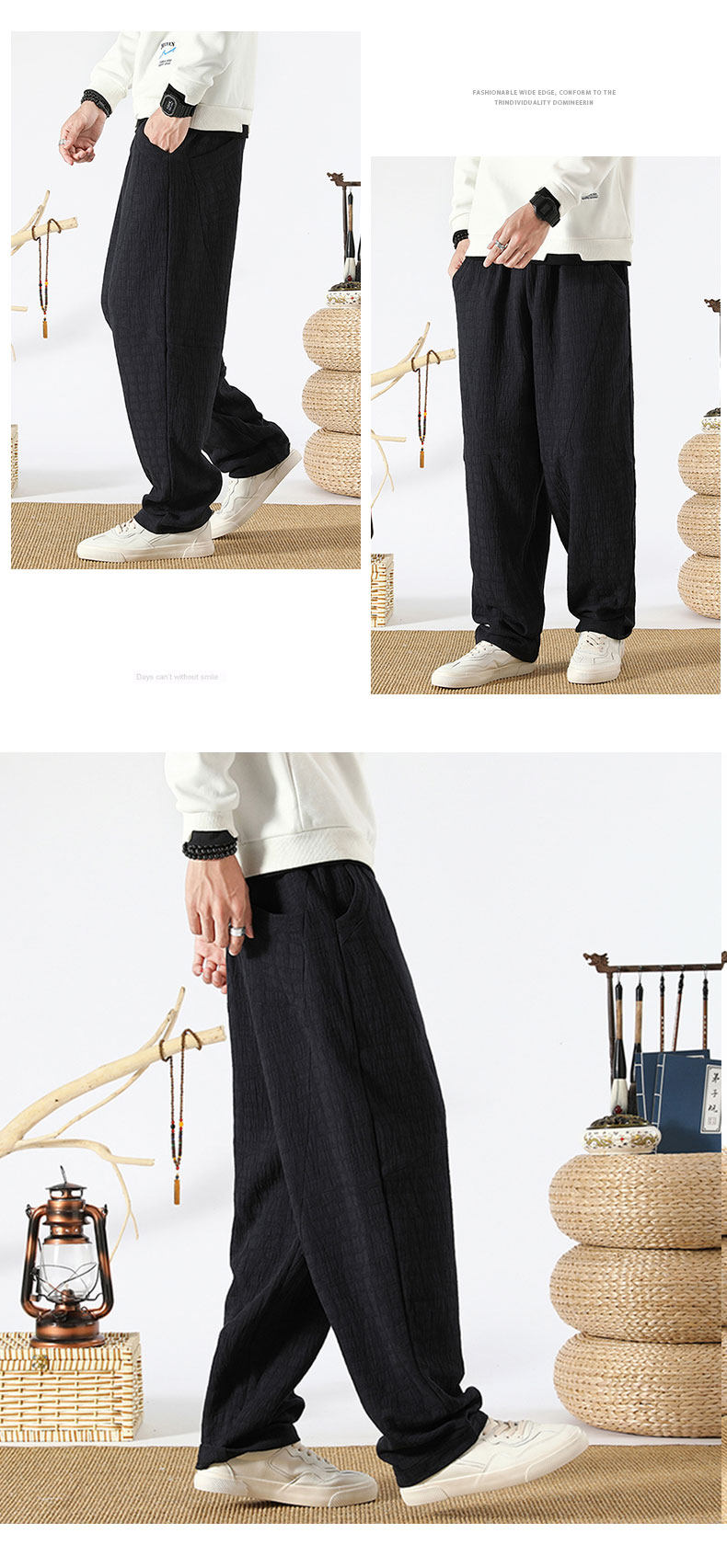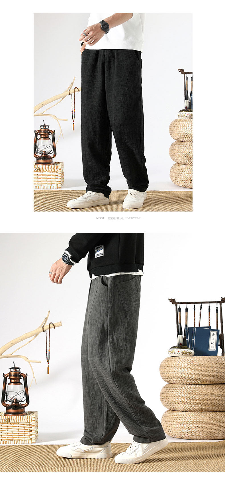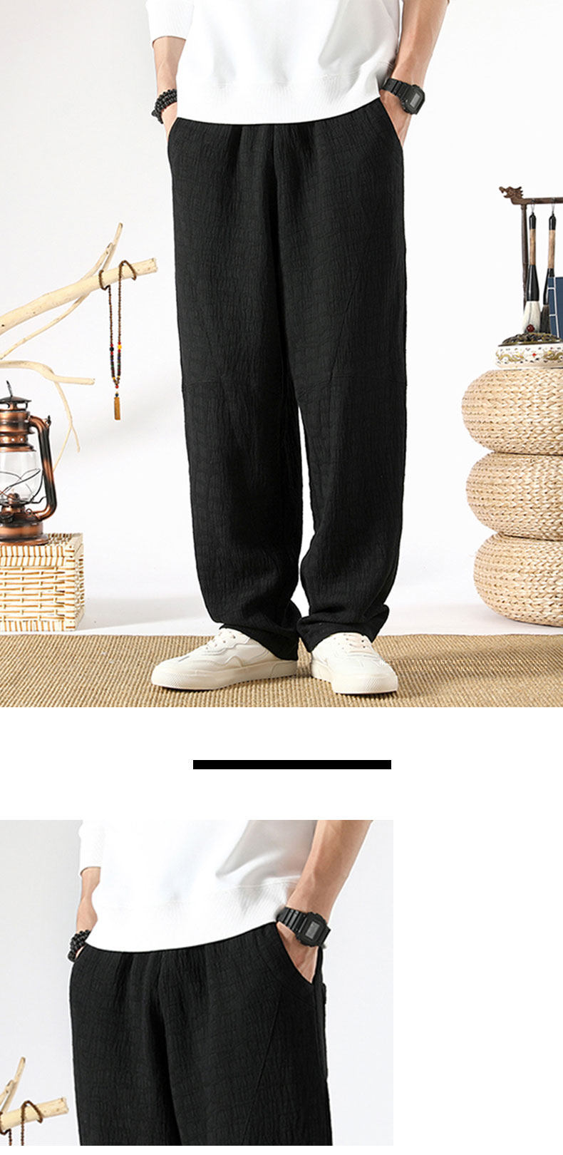 Осенние ретро штаны, китайский стиль, свободный прямой крой, из хлопка и льна, большой размер