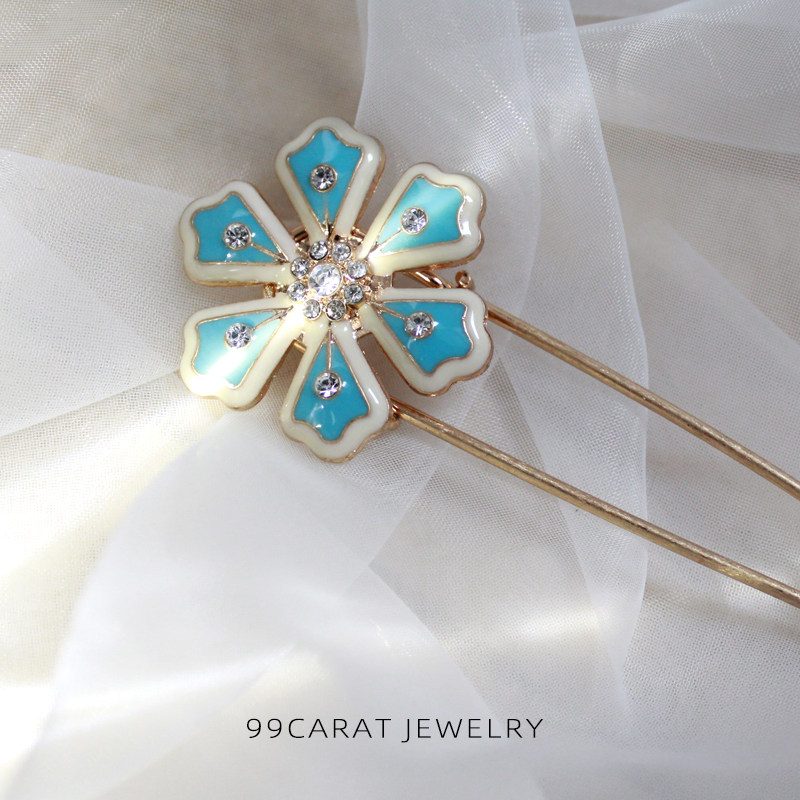 Ретро синяя брошь, 99 карат, европейский стиль, простой и элегантный дизайн, в цветочек