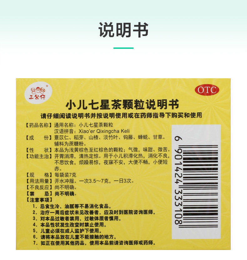 三公仔 Педиатрические семизвездные чайные гранулы 7G*10 мешков с детьми запоры, плохих стул, расстройство желудка и застоя детей