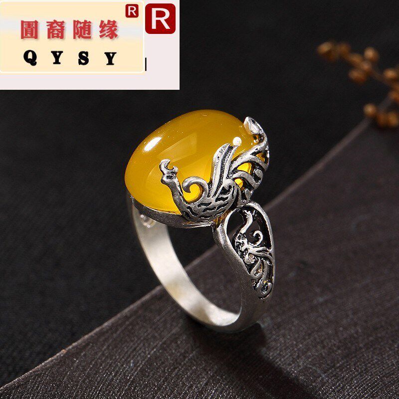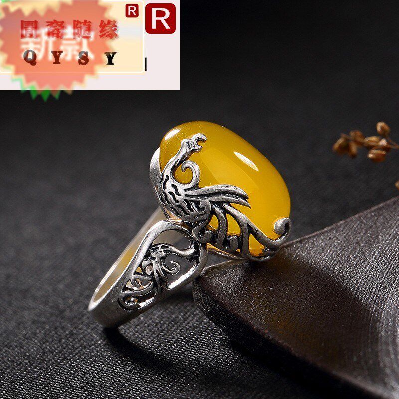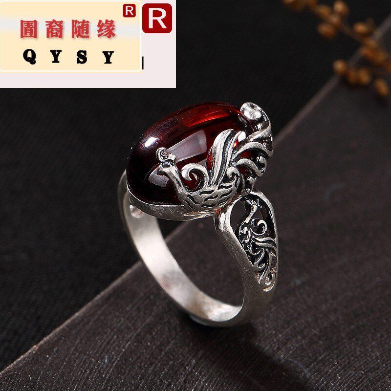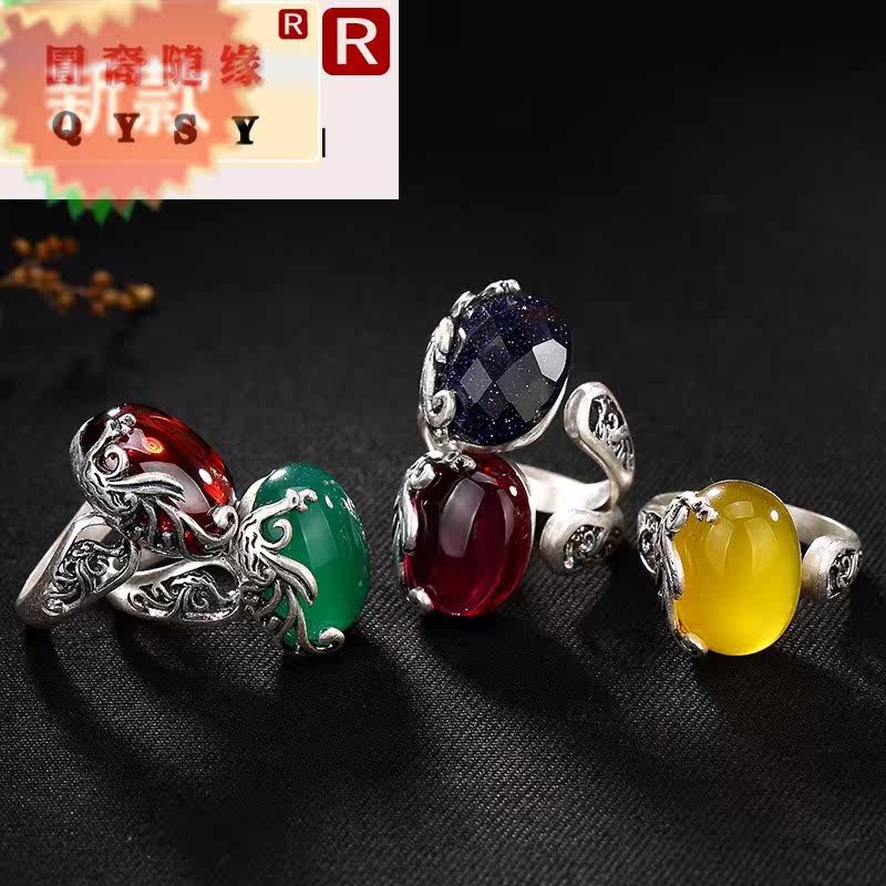 Феникс, ретро серебряный браслет, инкрустация камня, высококлассное безразмерное кольцо