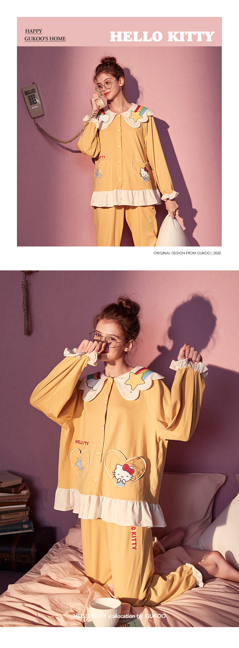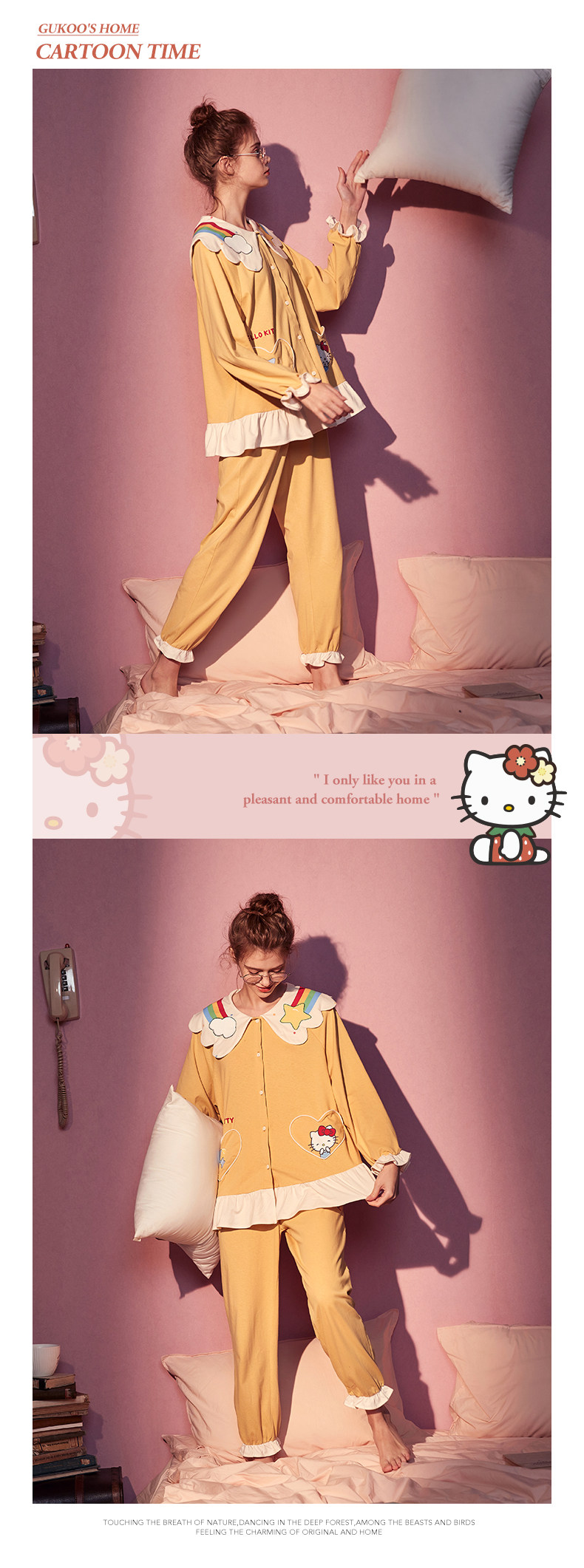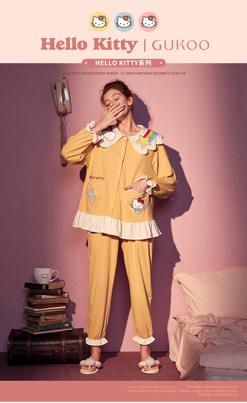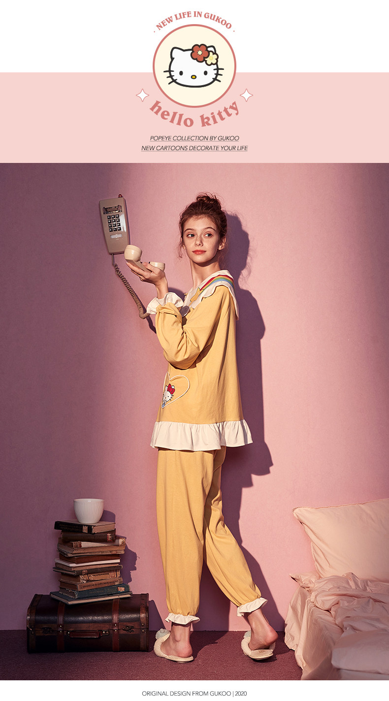 Gukoo/果壳 Hello Kitty, осенняя пижама, милый комплект