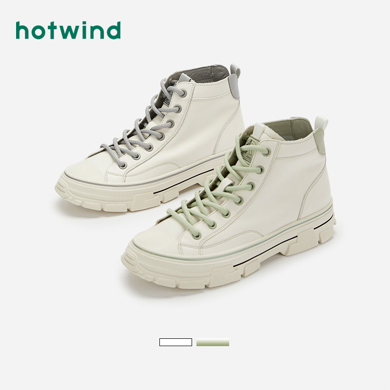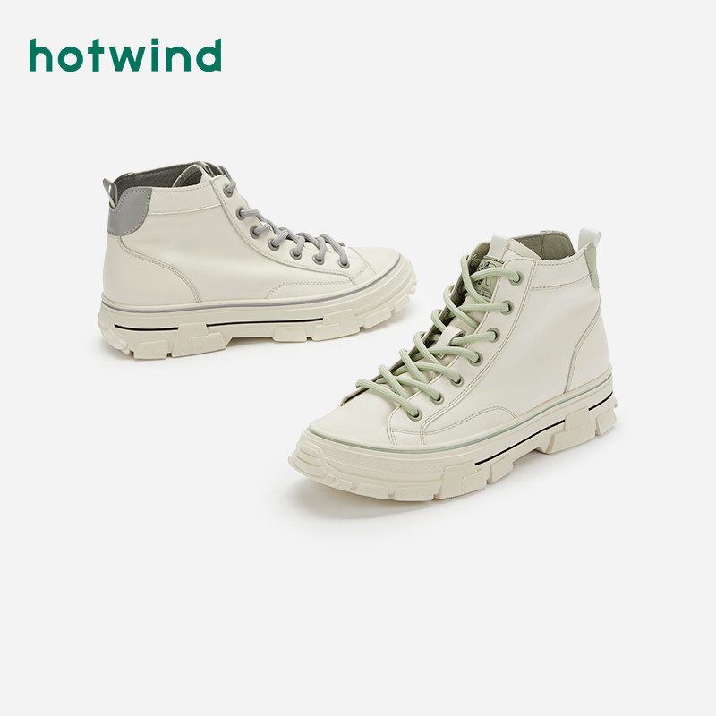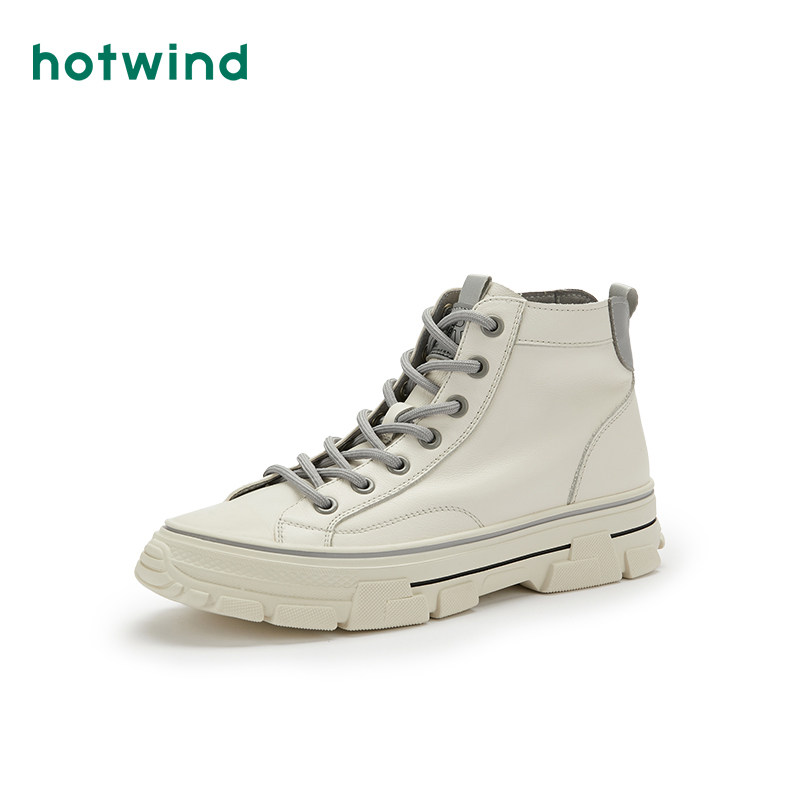 Hotwind/热风 Белые высокие спортивные повседневные туфли для женщин со шнурками и универсальная женская обувь в корейском стиле, зима 2020, новый стиль