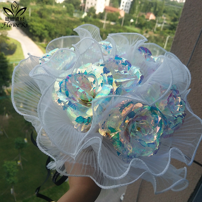 Романтические складные волны, розовая марля, марля с сетью цветочные пачки, сетевая марля -упаковка.